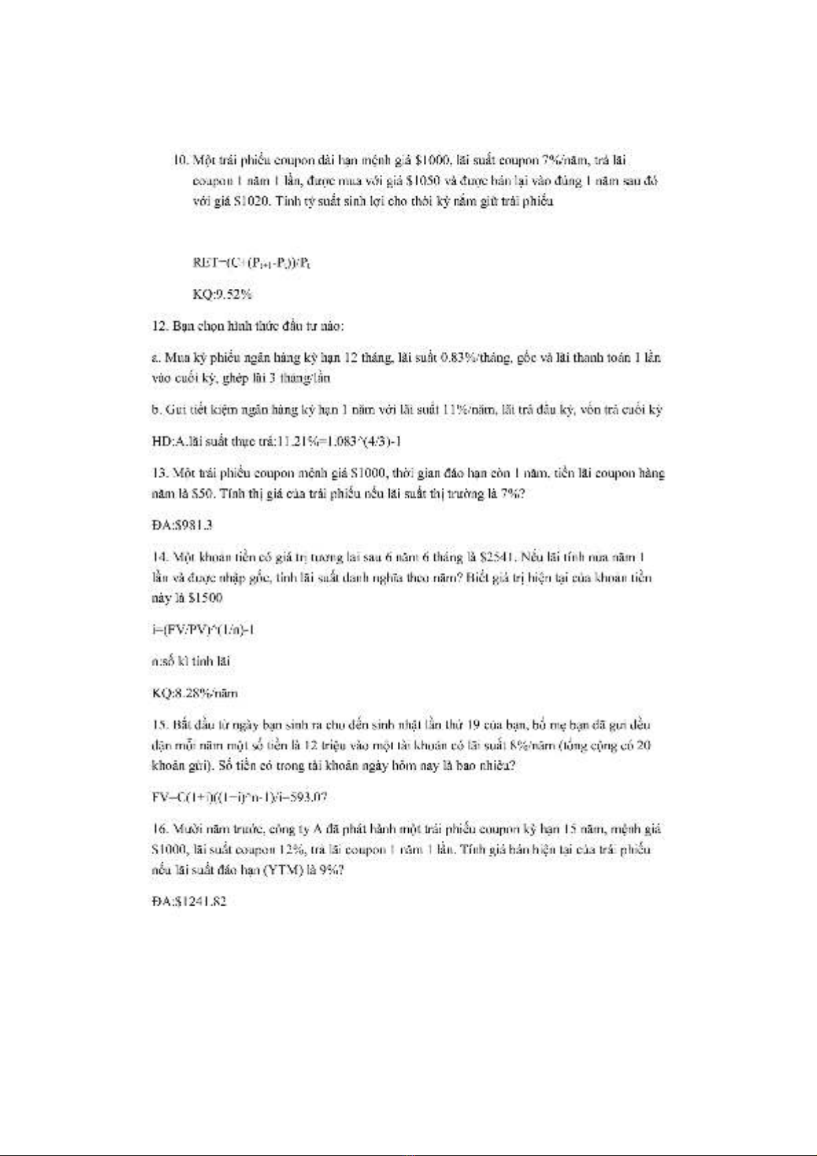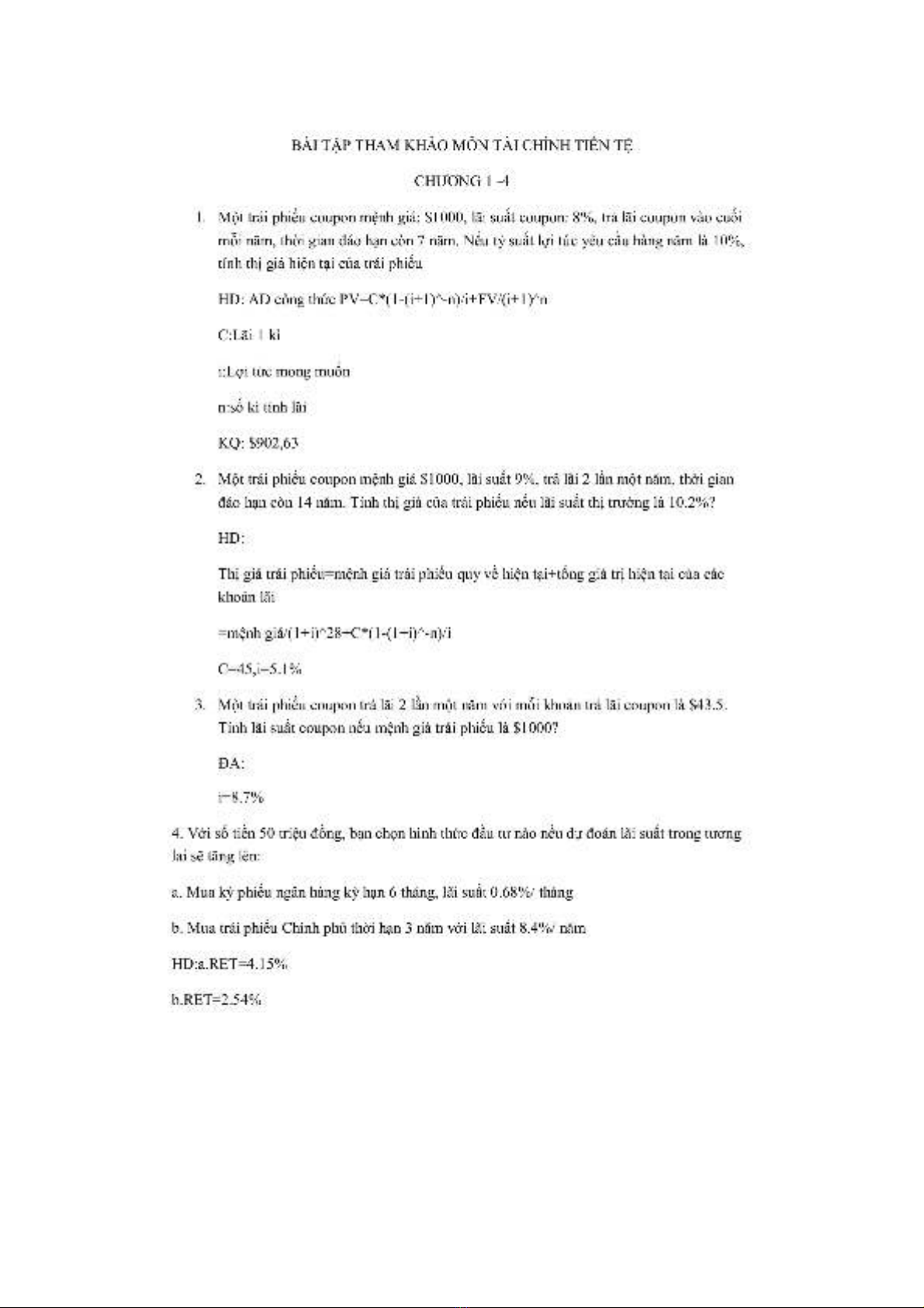 Mời các bạn tham khảo tài liệu Bài tập tham khảo môn Tài chính tiền tệ sau đây để biết được một số dạng bài tập chính thường được đưa ra trong môn Tài chính tiền tệ cũng như các công thức chính để giải những bài tập này. Tài liệu đặc biệt hữu ích với các bạn chuyên ngành Tài chính ngân hàng và những bạn đang theo học môn học này.