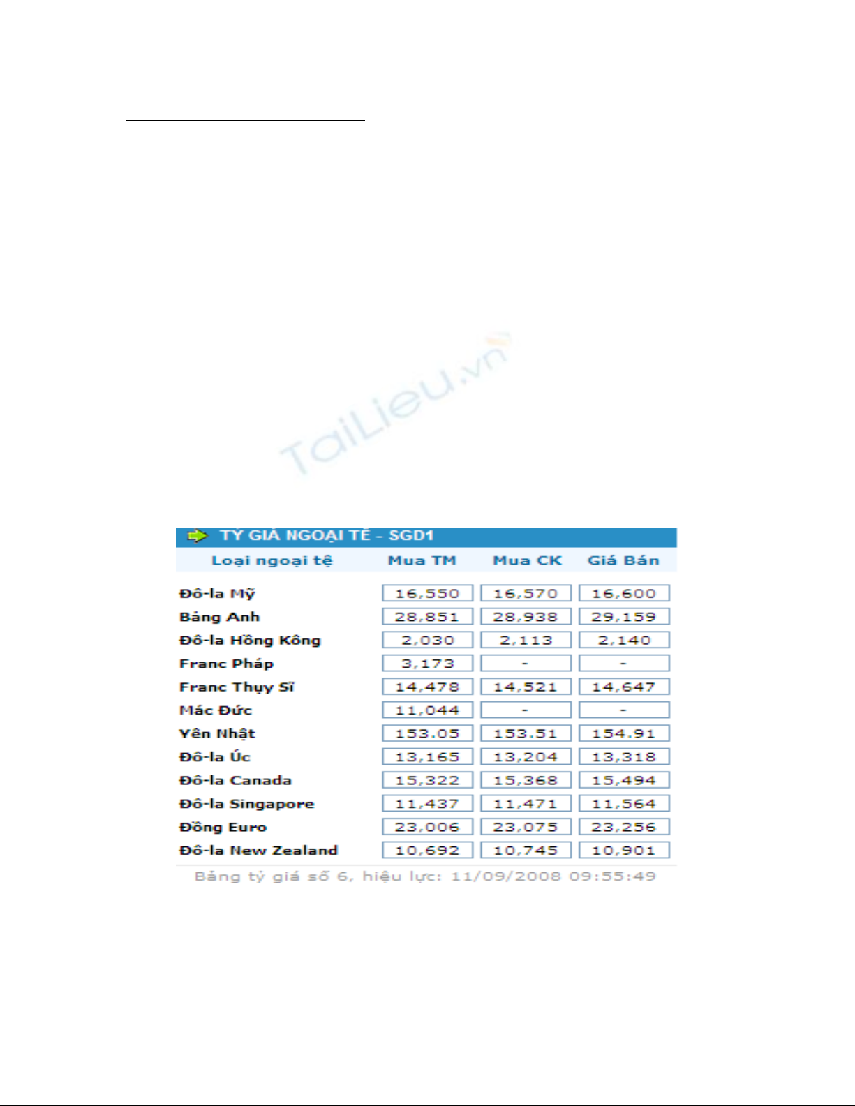 T giá trên th tr ng ti n t đ c cho trong b ng sau:ỷ ị ườ ề ệ ượ ả