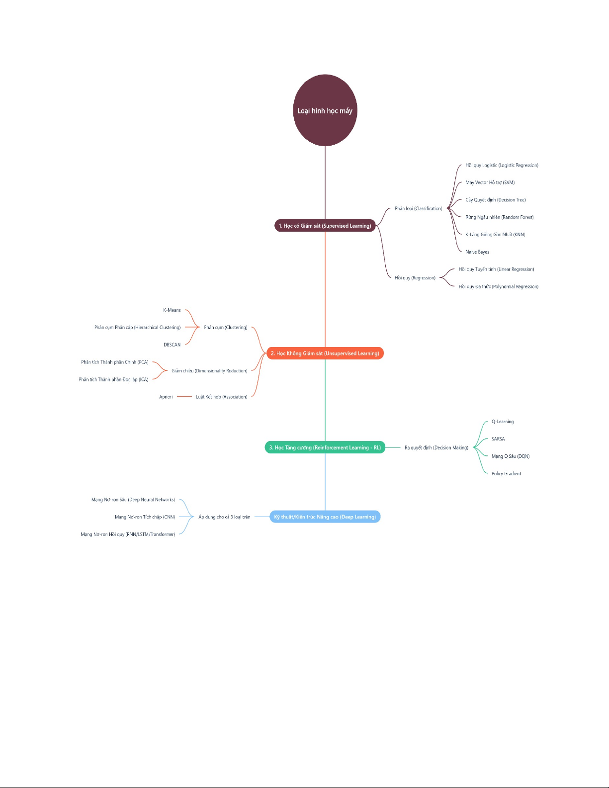 Câu 2: Tìm hiểu và liệt kê tất cả các thuật toán học máy bạn tìm thấy và phân loại