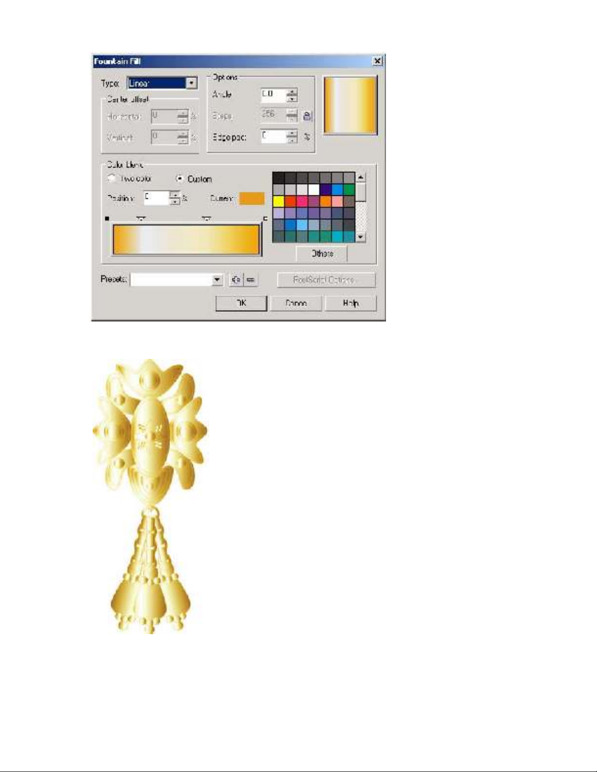 Sau đó xắp xếp chúng lại với nhau, rồi vào Fill Tool>Fountain Fill Dialog tô màu cho đối tượng