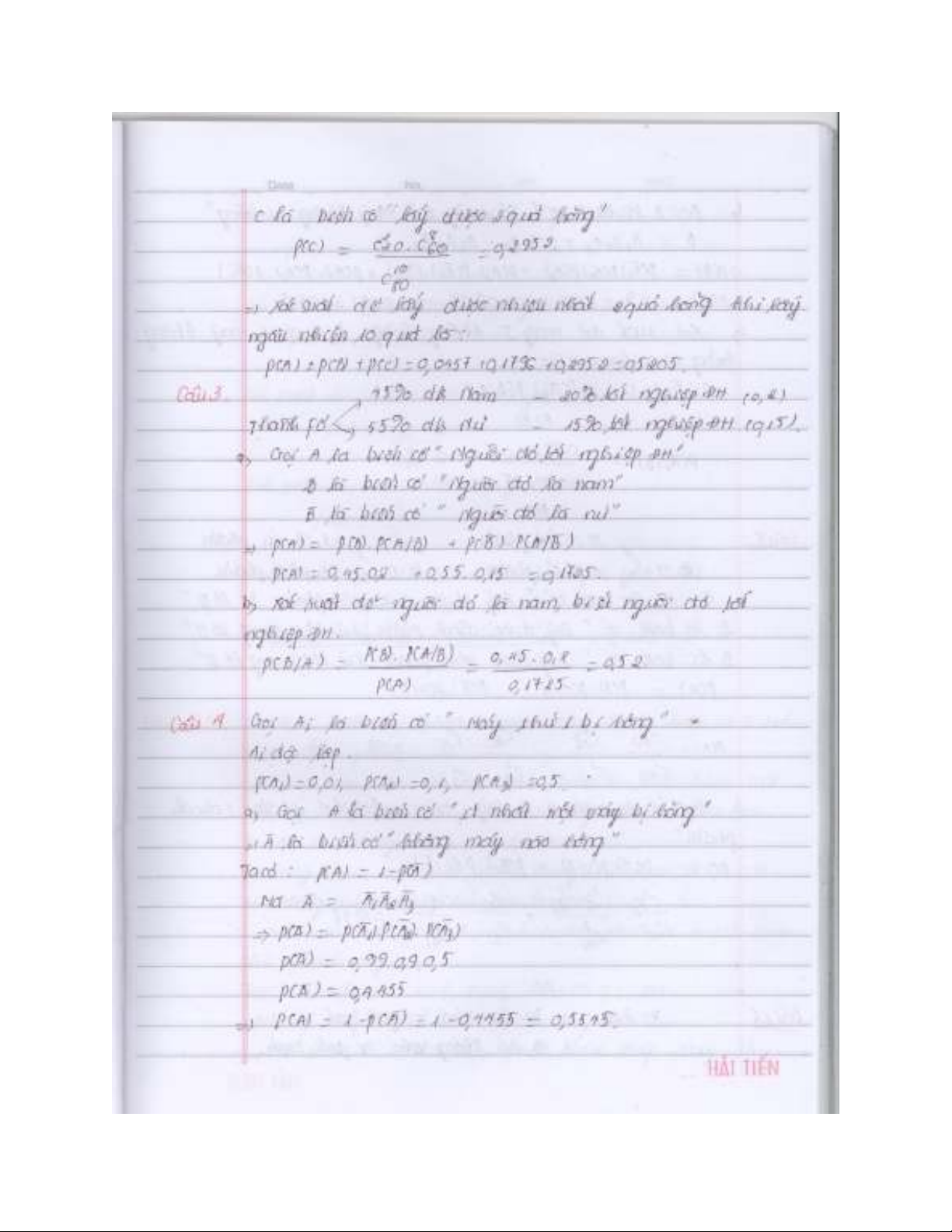 Tóm tắt kiến thức và bài tập Lý thuyết xác suất và thống kê toán