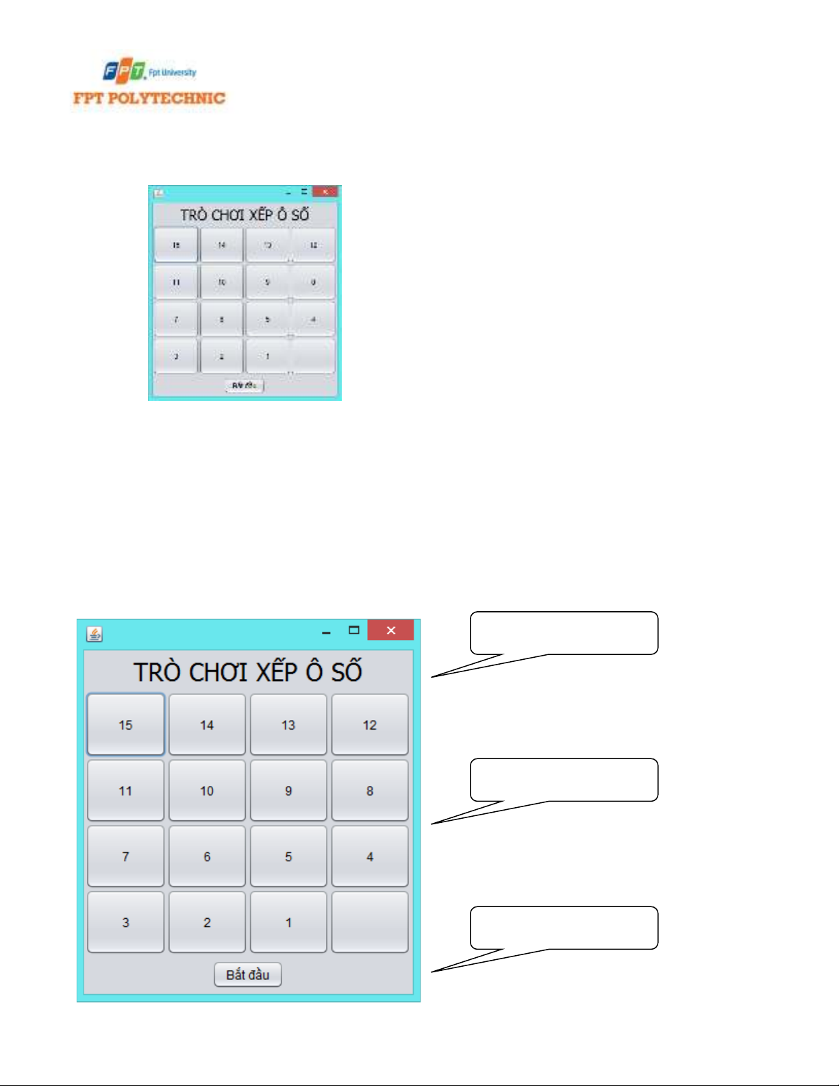 Bài 1: Xây dựng giao diện trò chơi xếp ô số như sau