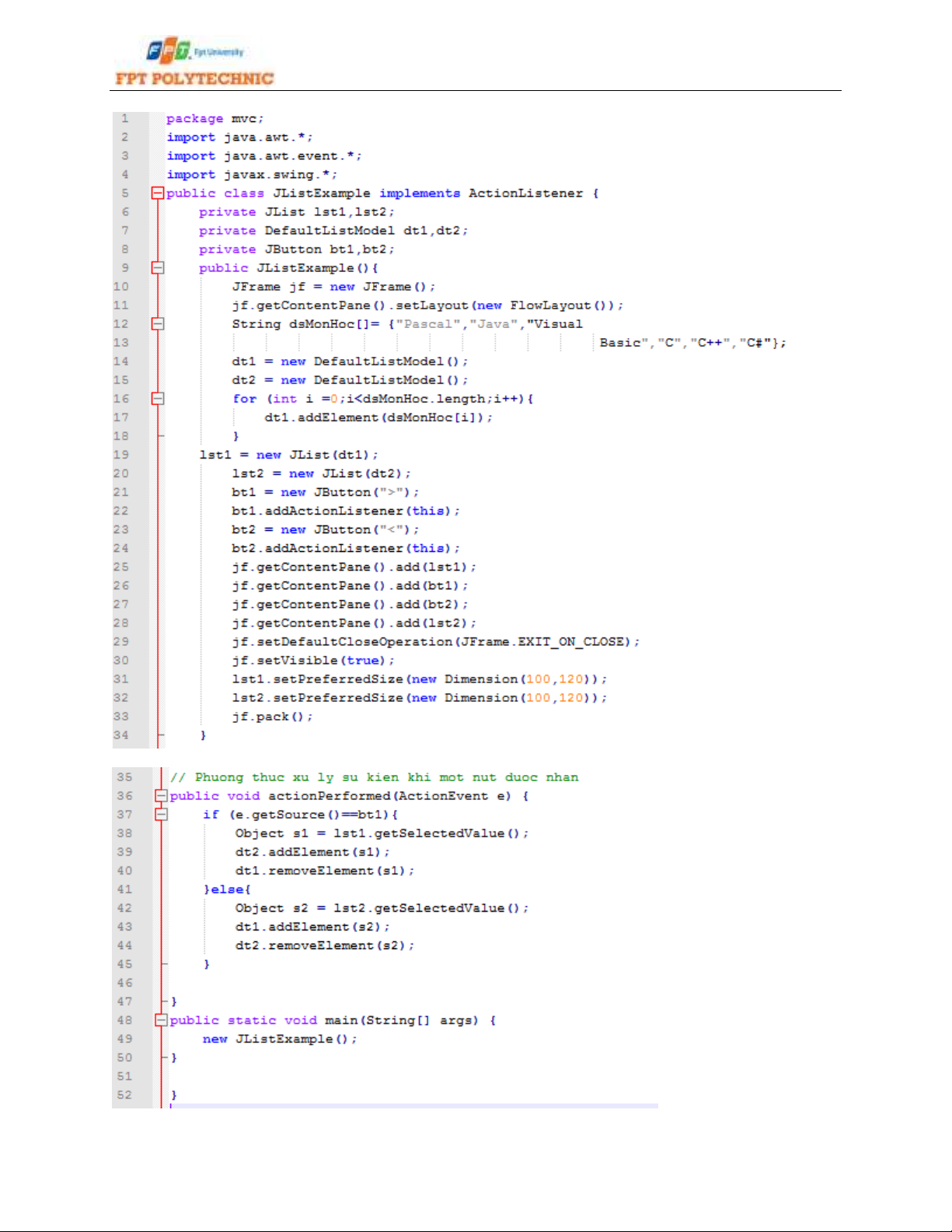 • Controller: Xử lý sự kiện khi một nút được nhấn