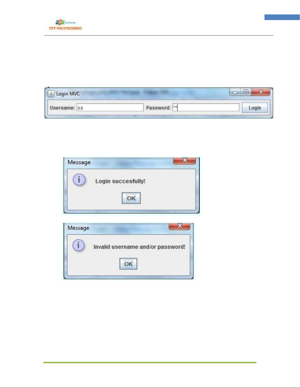 1. Mỗi khi click vào nút Login, chương trình phải kiểm tra thông tin đăng nhập có đúng