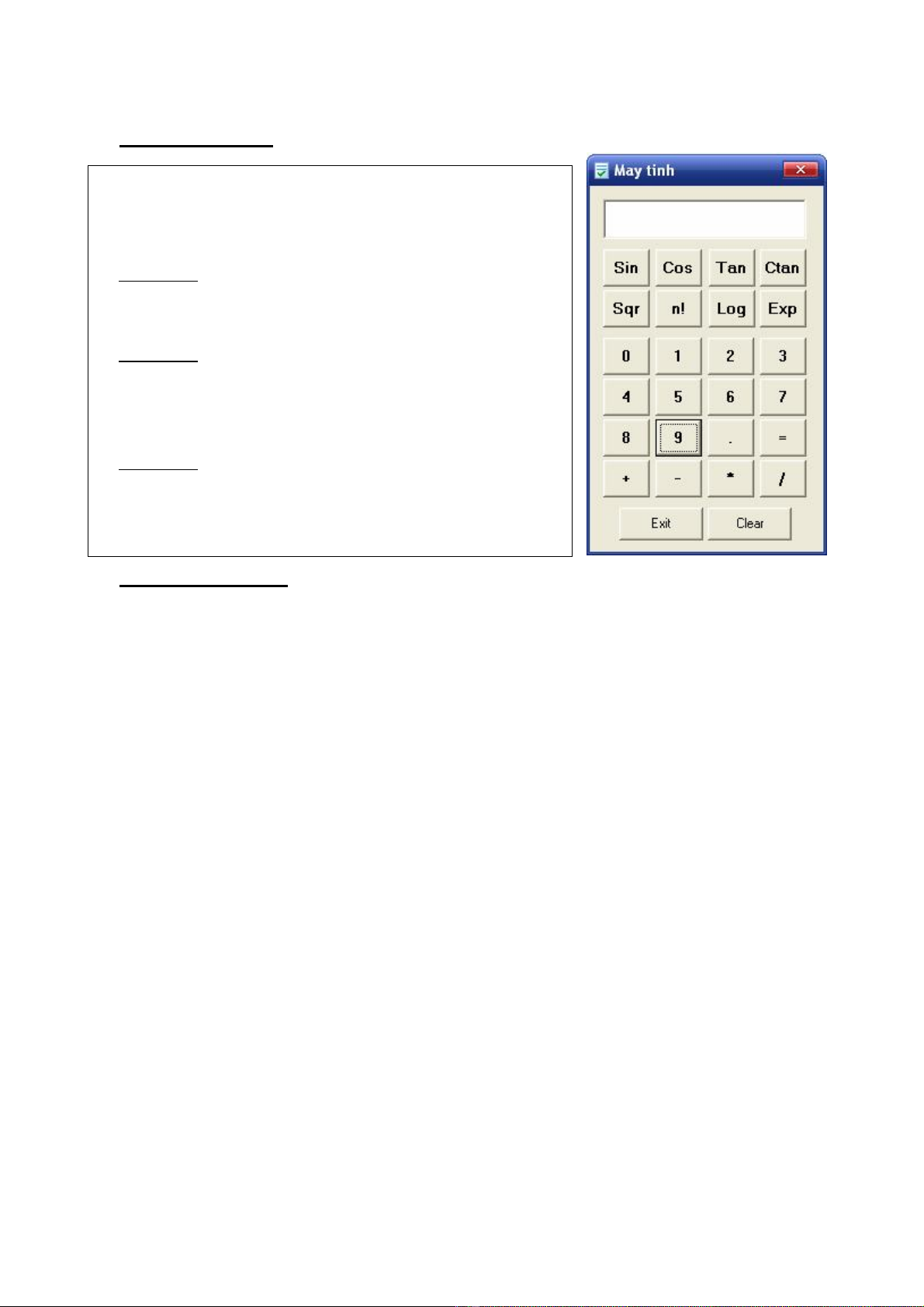 Viết chương trình mô phỏng một máy tính bỏ túi dạng đơn giản, có thể thực hiện được
