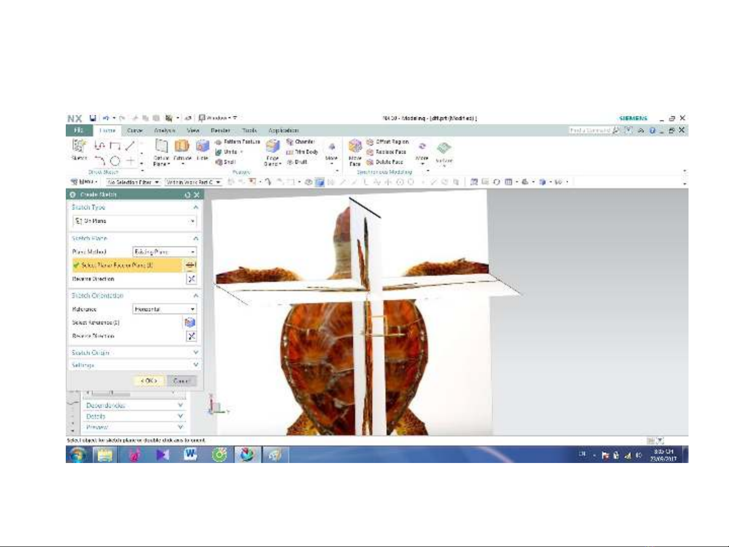 - Bước 2: Tạo sketch trên hình chiếu BẰNG của Con Rùa