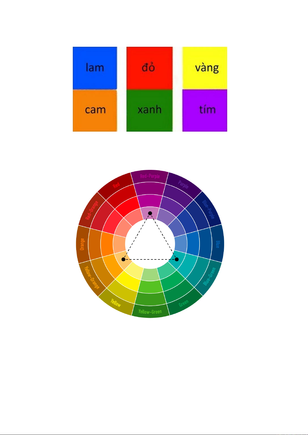 hệ thống màu cơ bản (primary colors), màu cấp hai và cấp ba, cùng với các khái niệm về