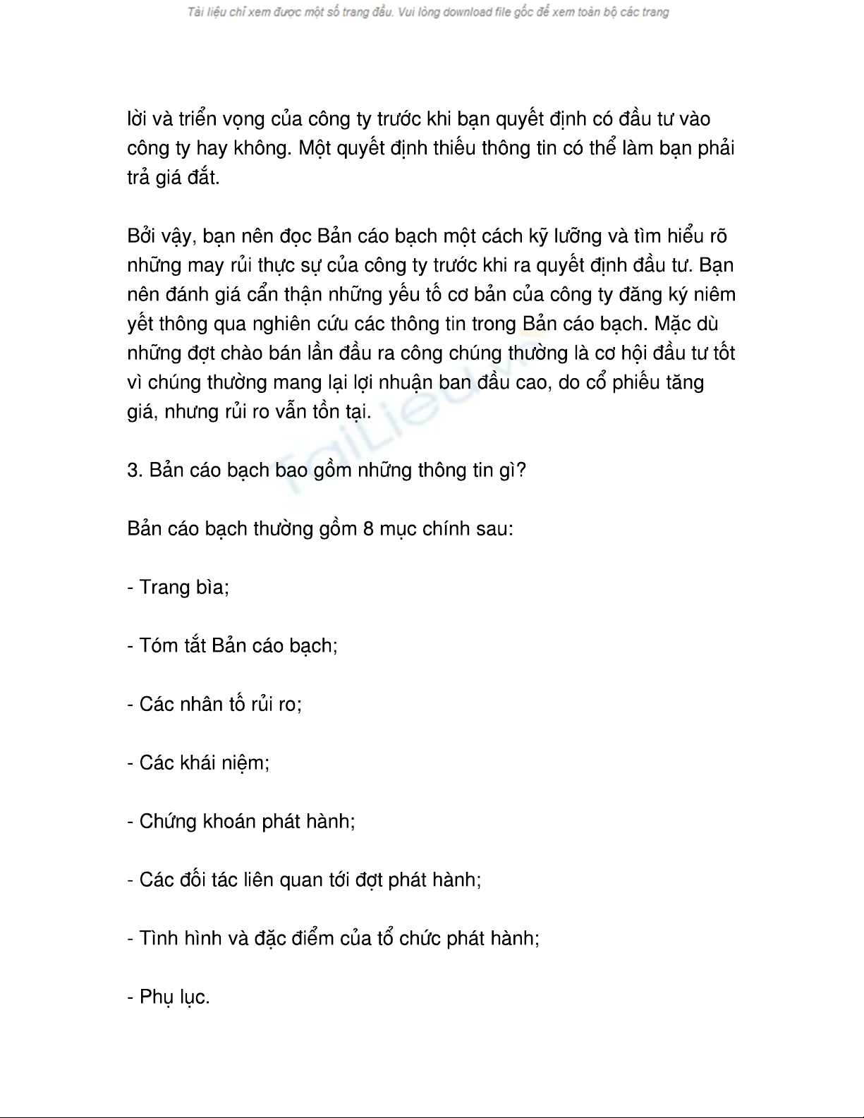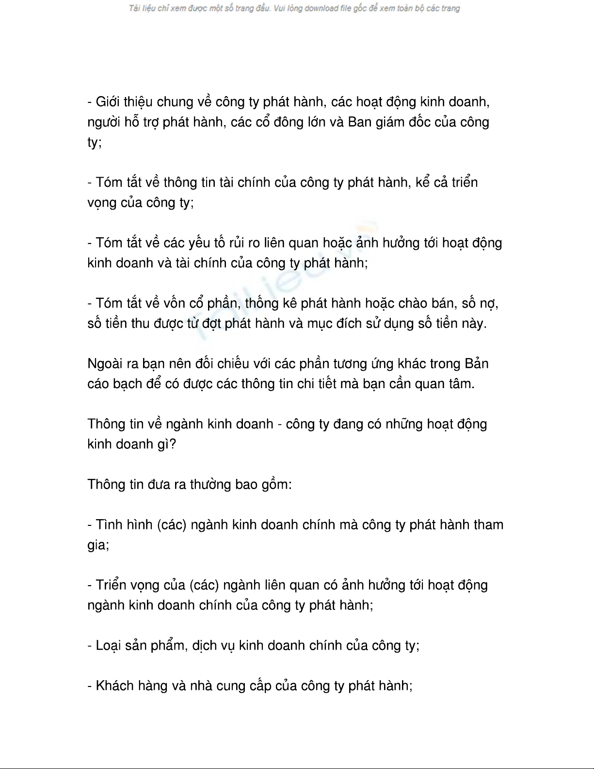 Khi phát hành chứng khoán ra công chúng, công ty phát hành phải công bố cho người mua chứng khoán những thông tin về bản thân công ty, nêu rõ những cam kết của công ty và những quyền lợi cơ bản của người mua chứng khoán... để trên cơ sở đó người đầu tư có thể chia ra quyết định đầu tư hay không.