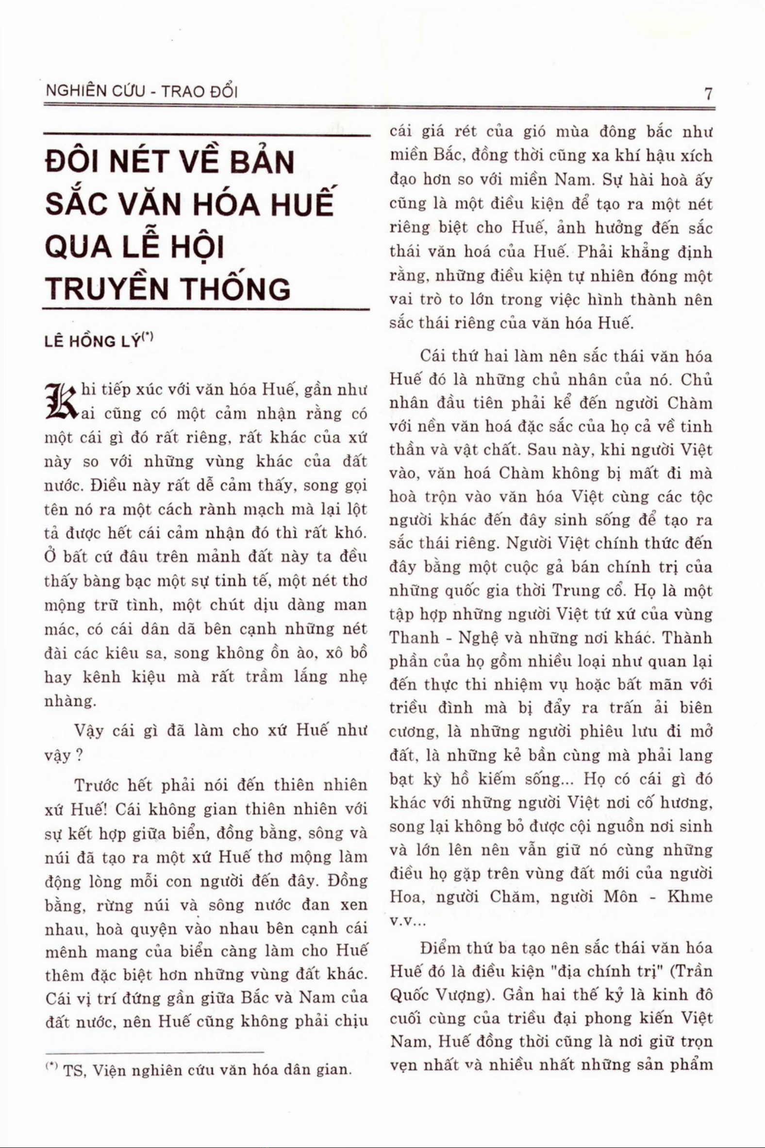 Bản sắc văn hóa của Huế qua lễ hội truyền thống: Bài viết tập trung vào những lễ hội tiêu biểu của Huế, phân tích ý nghĩa và vai trò của chúng trong đời sống cộng đồng. Lễ hội quy hoạch theo tháng, được tiền tố xem xét về những yếu tố như lịch sử, nghệ thuật và tín ngưỡng của Huế. Những lễ hội quy hoạch không chỉ là dịp để người dân tưởng nhớ tổ tiên, mà còn là cơ hội để gìn giữ và phát huy những phong tục tập quán lâu đời. Lễ hội truyền thống của Huế có vai trò quan trọng ở việc bảo tồn và phát triển bản sắc văn hóa của nơi. Bài viết cũng đề cập đến một số lễ hội khác, trong đó có các lễ hội truyền thống được tổ chức nhằm gia tăng độ phát triển và quyết liệt của cộng đồng. Mỗi lễ hội có một trách nhiệm khác nhau, nhưng chúng đều có thể góp phần vào việc bảo tồn và phát triển bản sắc văn hóa của Huế.