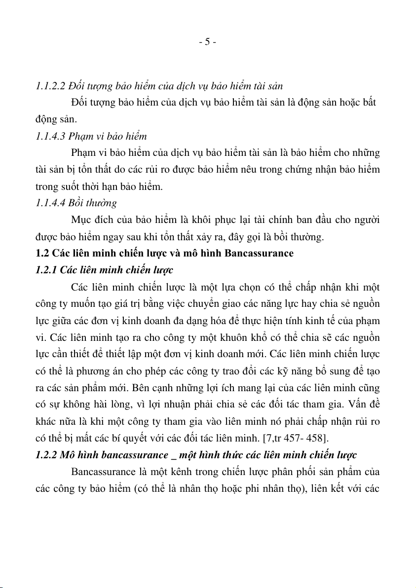 sản, các liên minh chiến lược và mô hình Bancassurance. Tp trung đưa ra các