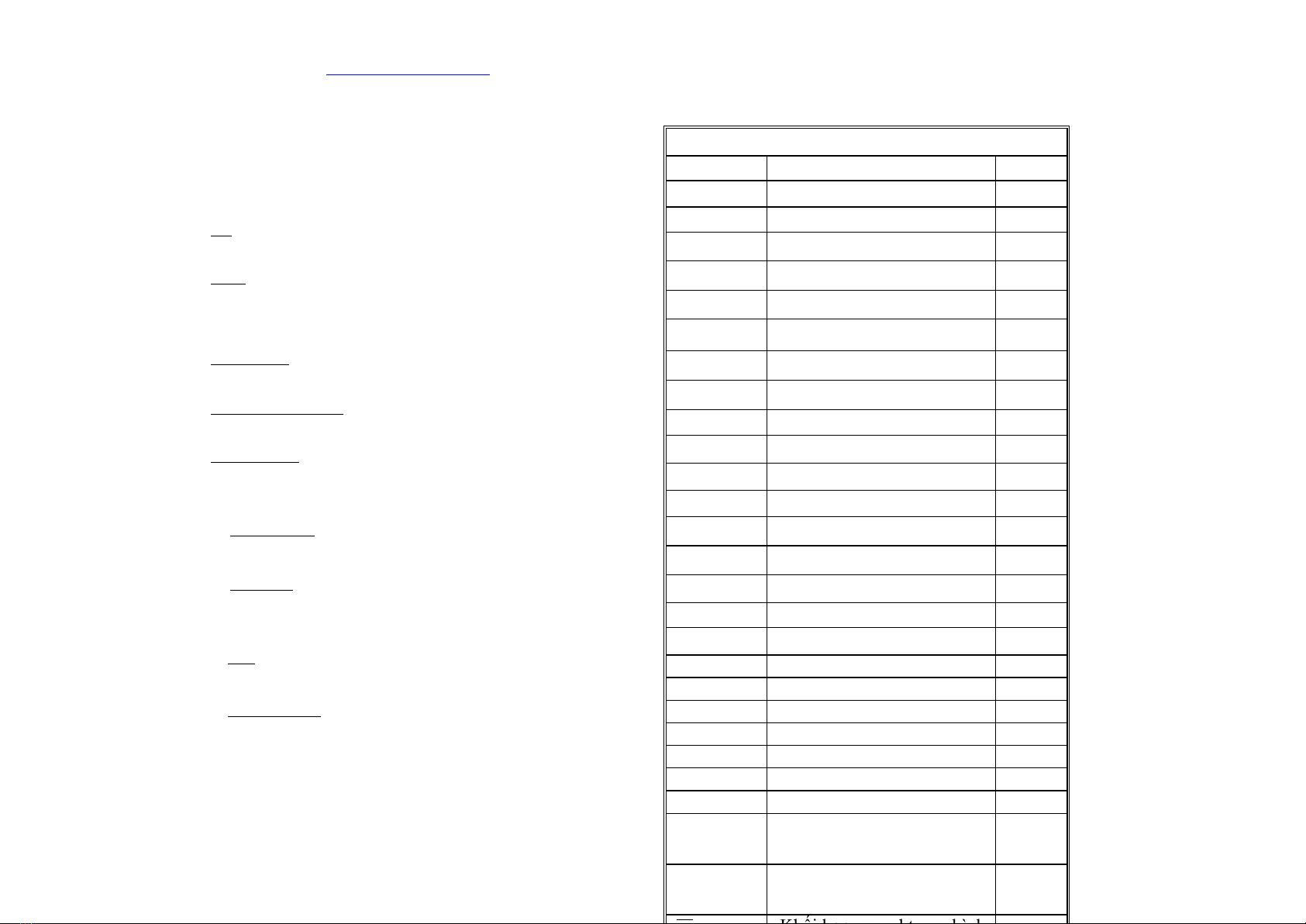 II) TOÙM TAÉT THUOÁC THÖÛ VAØ DAÁU HIEÄU NHAÄN BIEÁT MOÄT SOÁ CHAÁT VOÂ CÔ: