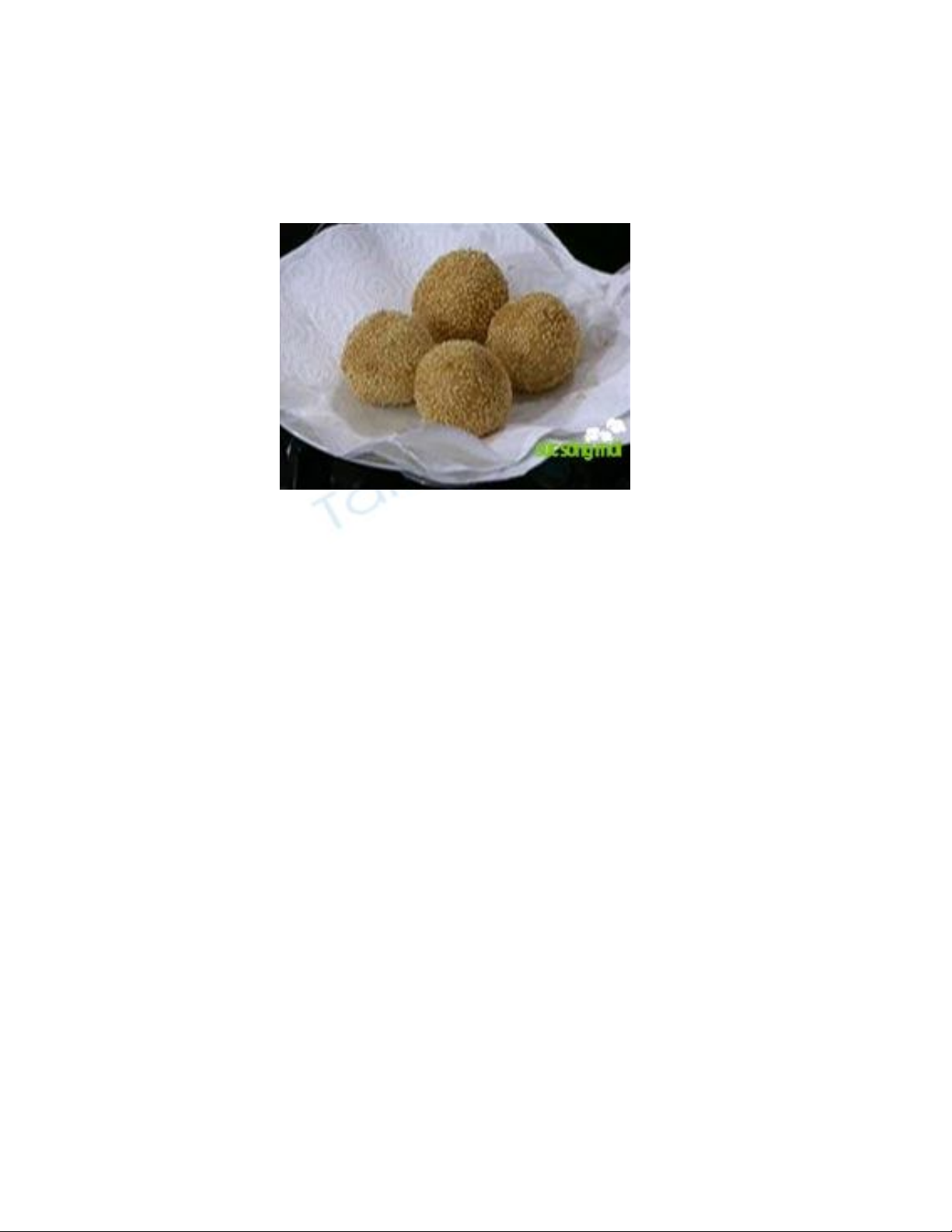 giữa, vo tròn kín lại, lăn qua mè cho mè bám đều bên ngoài bánh.