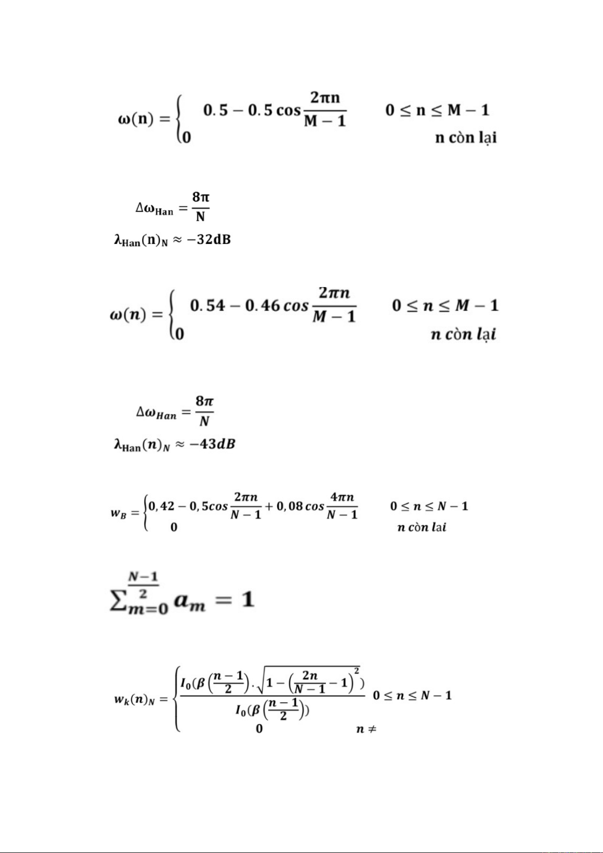 Hamming, cửa sổ Hanning, cửa sổ Blackman, cửa sổ rectangular, v.v. Mỗi