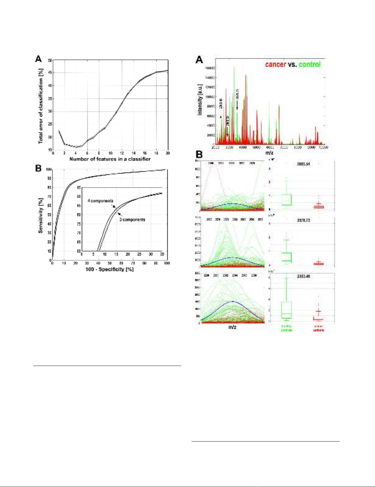 sensitivity and 85% specificity. Spectral components (i.e., protein ions) that were the most frequent