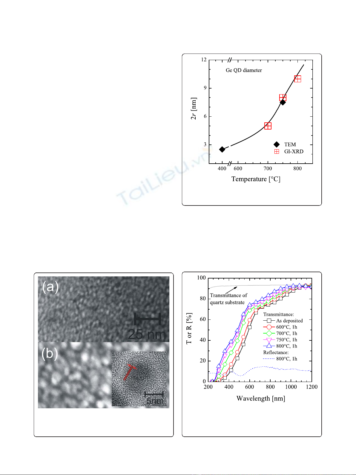 ones. Moreover, in Ge QDs, the aspectra at 800°C