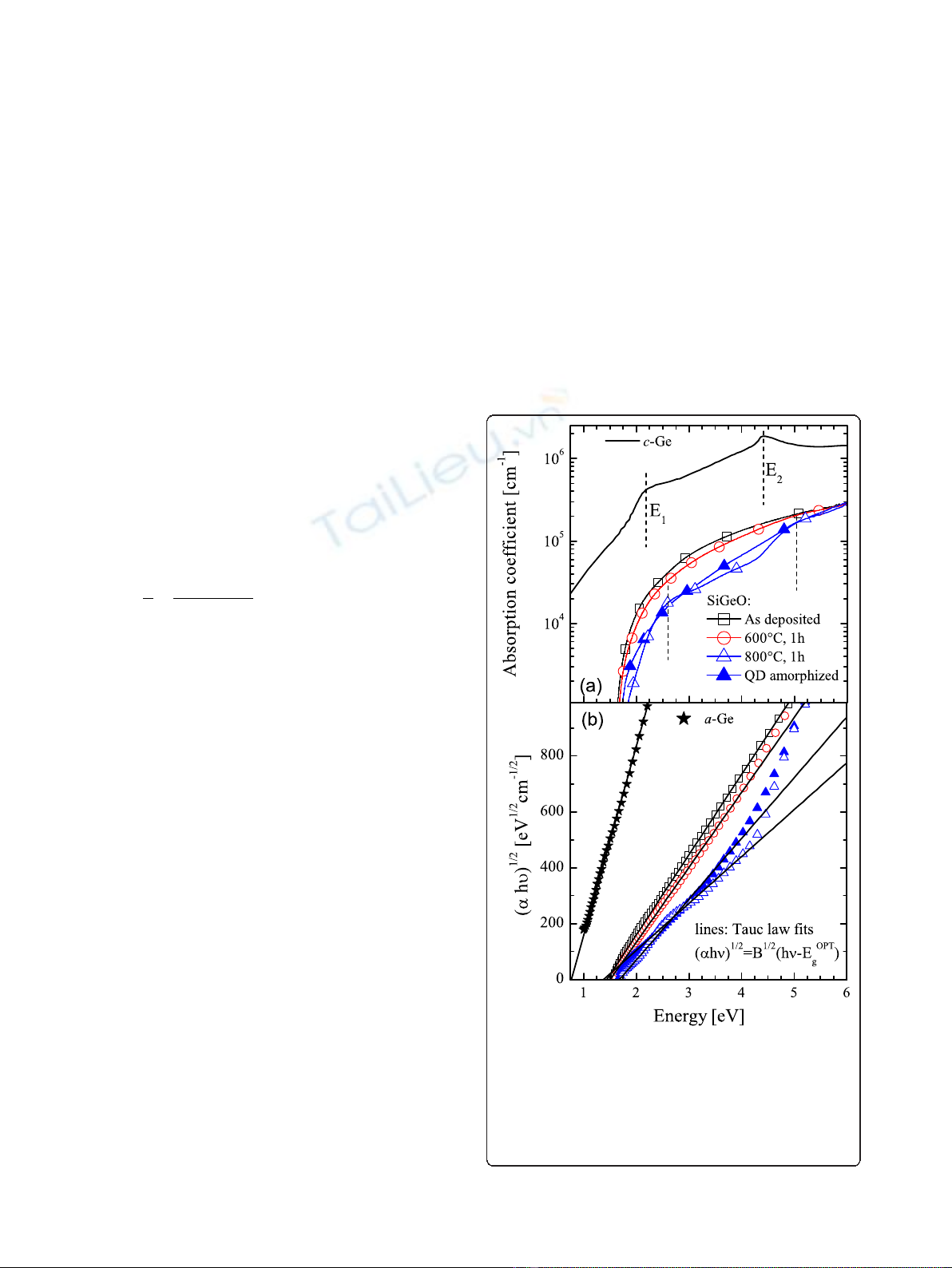 light absorption (optical bandgap, E