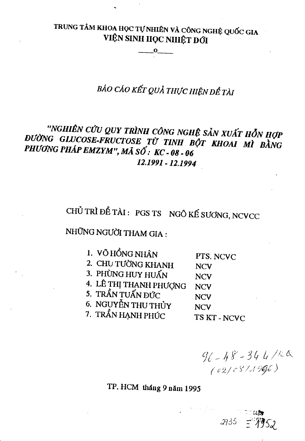 FRUCTOSE TỪ TINH BỘT KHOAI MÌ BẰNG