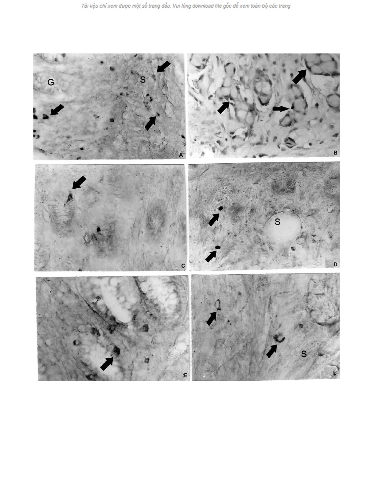 in the appendiceal submucosa (S). Magnifications × a, b, c, d, e, f- × 300.