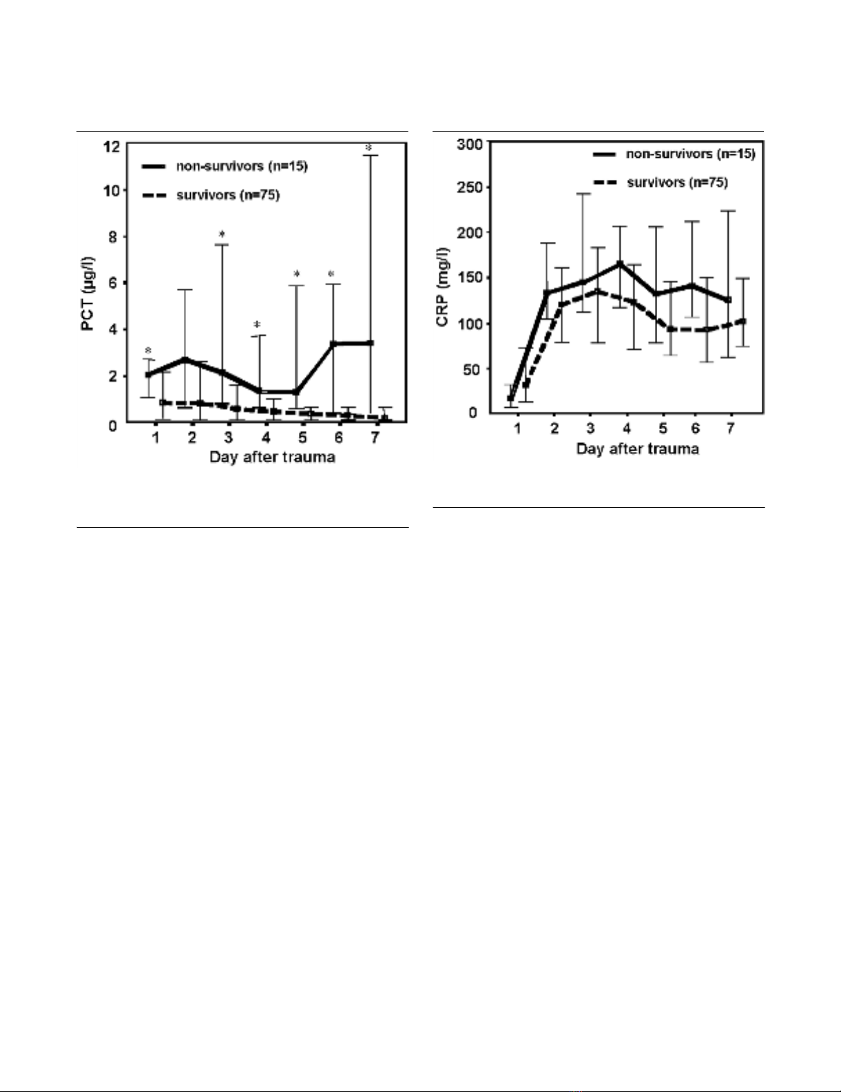 after the trauma. Initial PCT levels (days 1 and 2 after trauma)