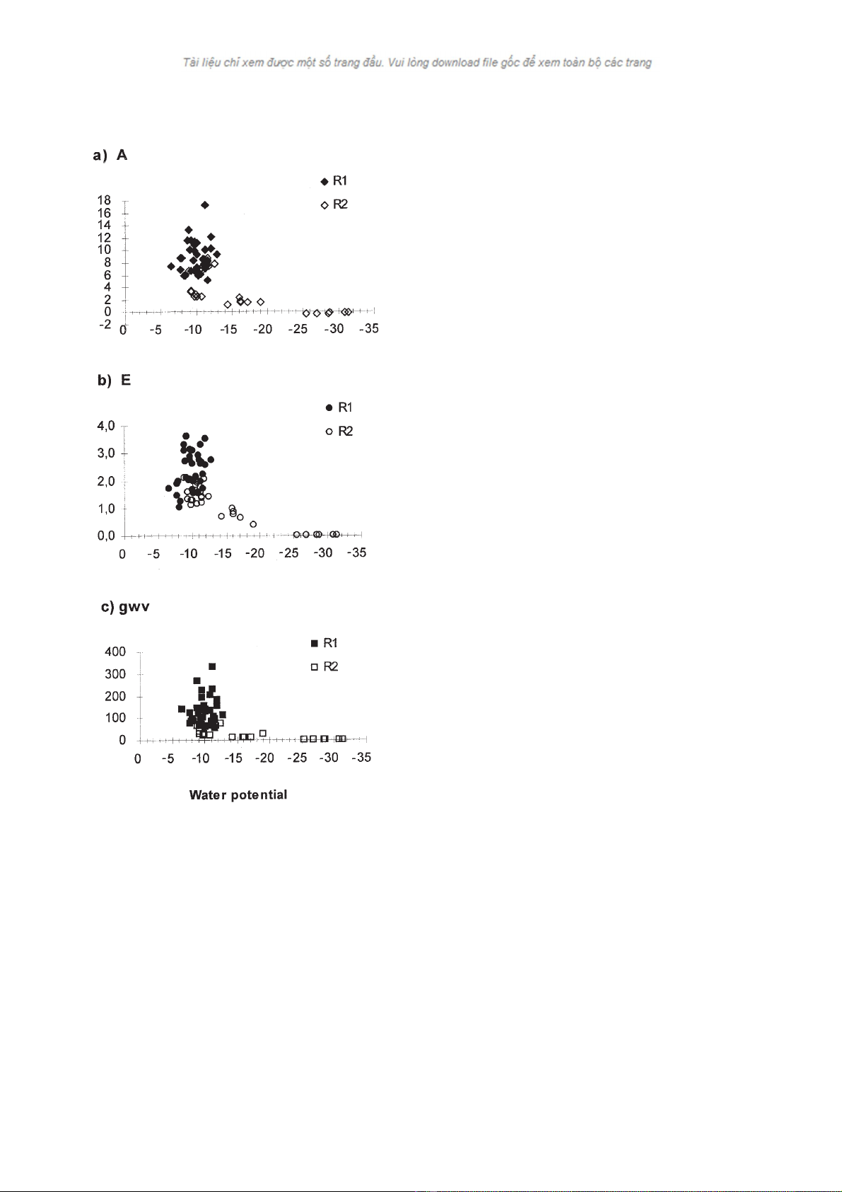 dle water potential values up to about –1.3 MPa and then