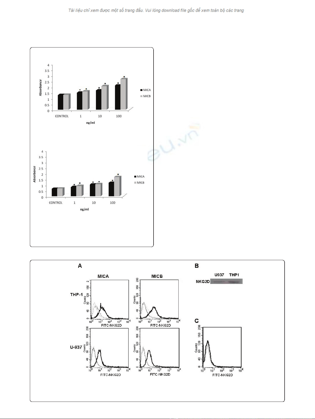 express the receptor NKG2D. When THP-1 and U-937 were cultured with recombinant MICA and MICB they