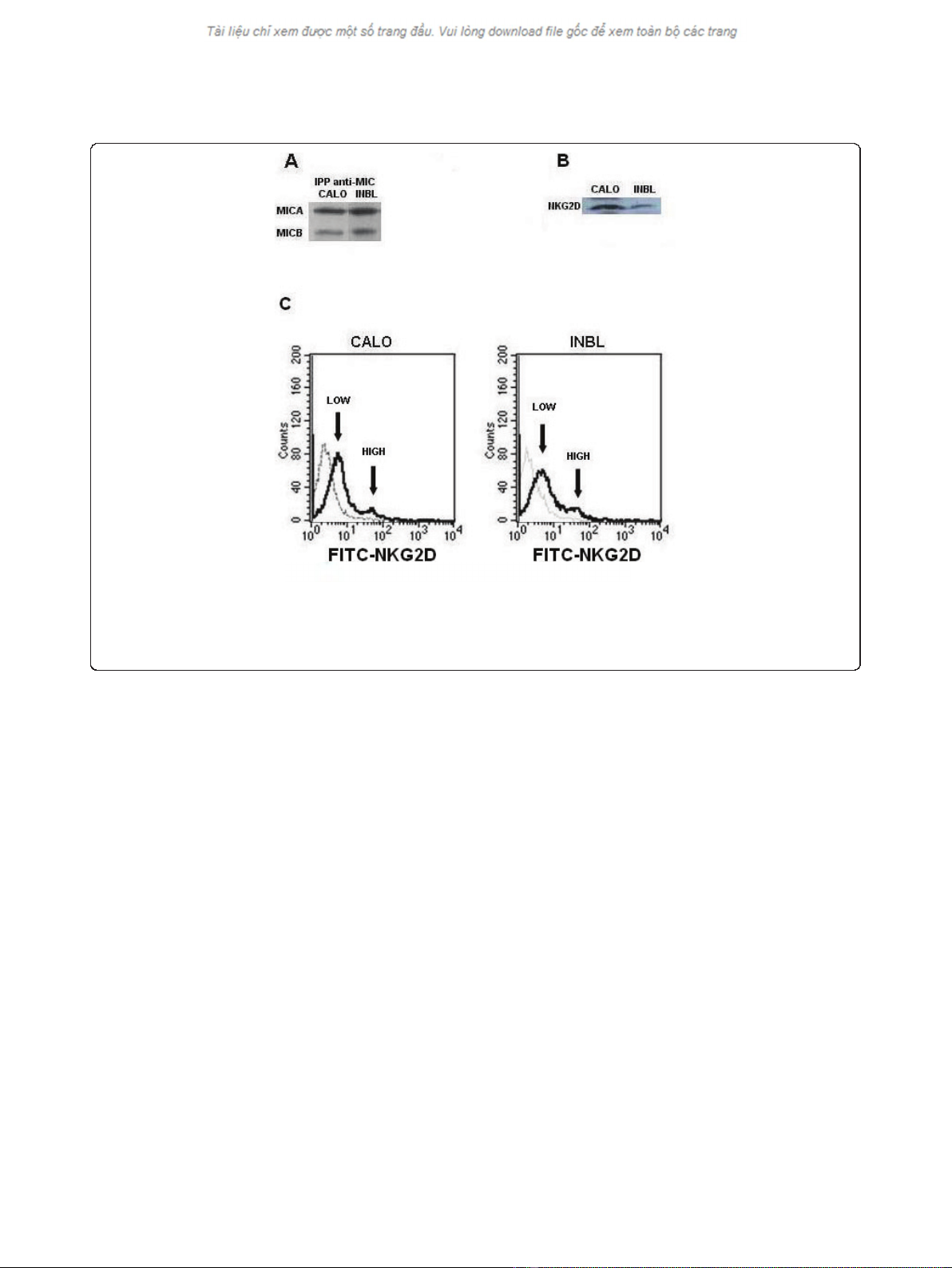 Figure 4 Cervical cancer cell lines express MICA, MICB and NKG2D. CALO and INBL cells (1×10