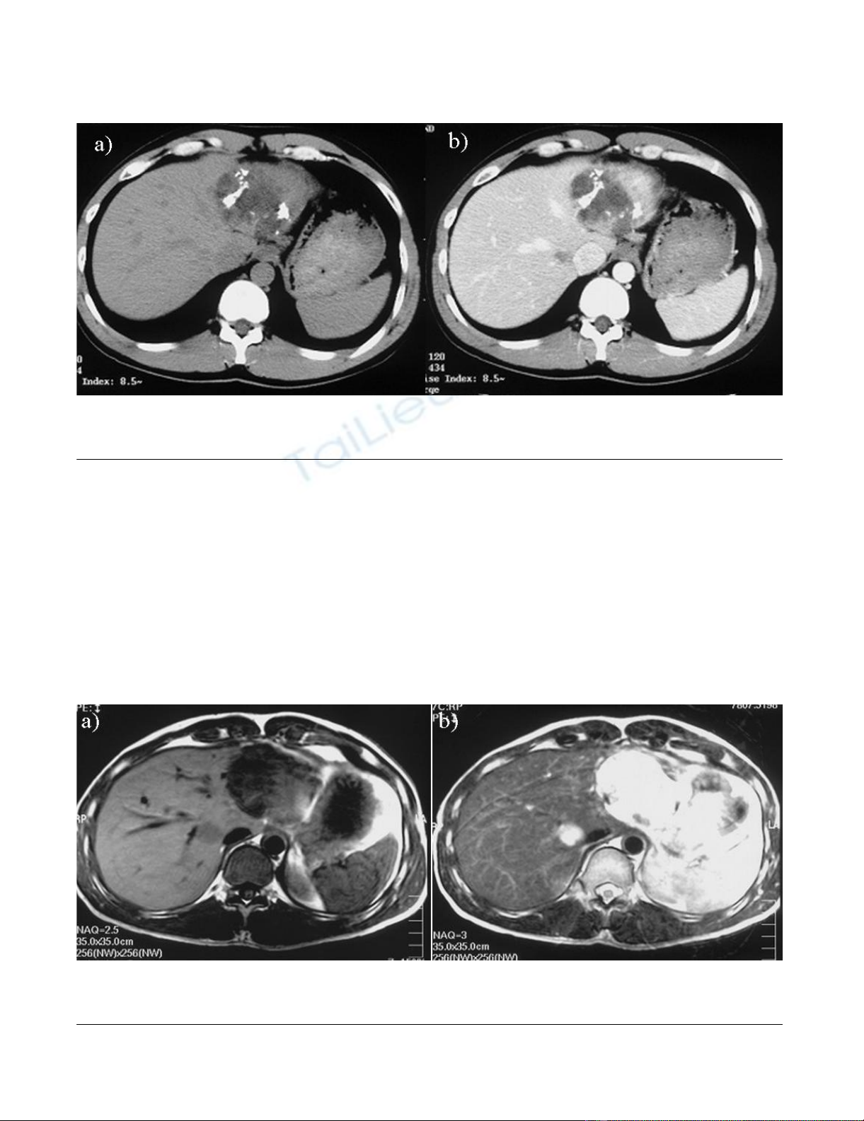 within the cyst (Fig. 2a, b). MRI revealed a partly low