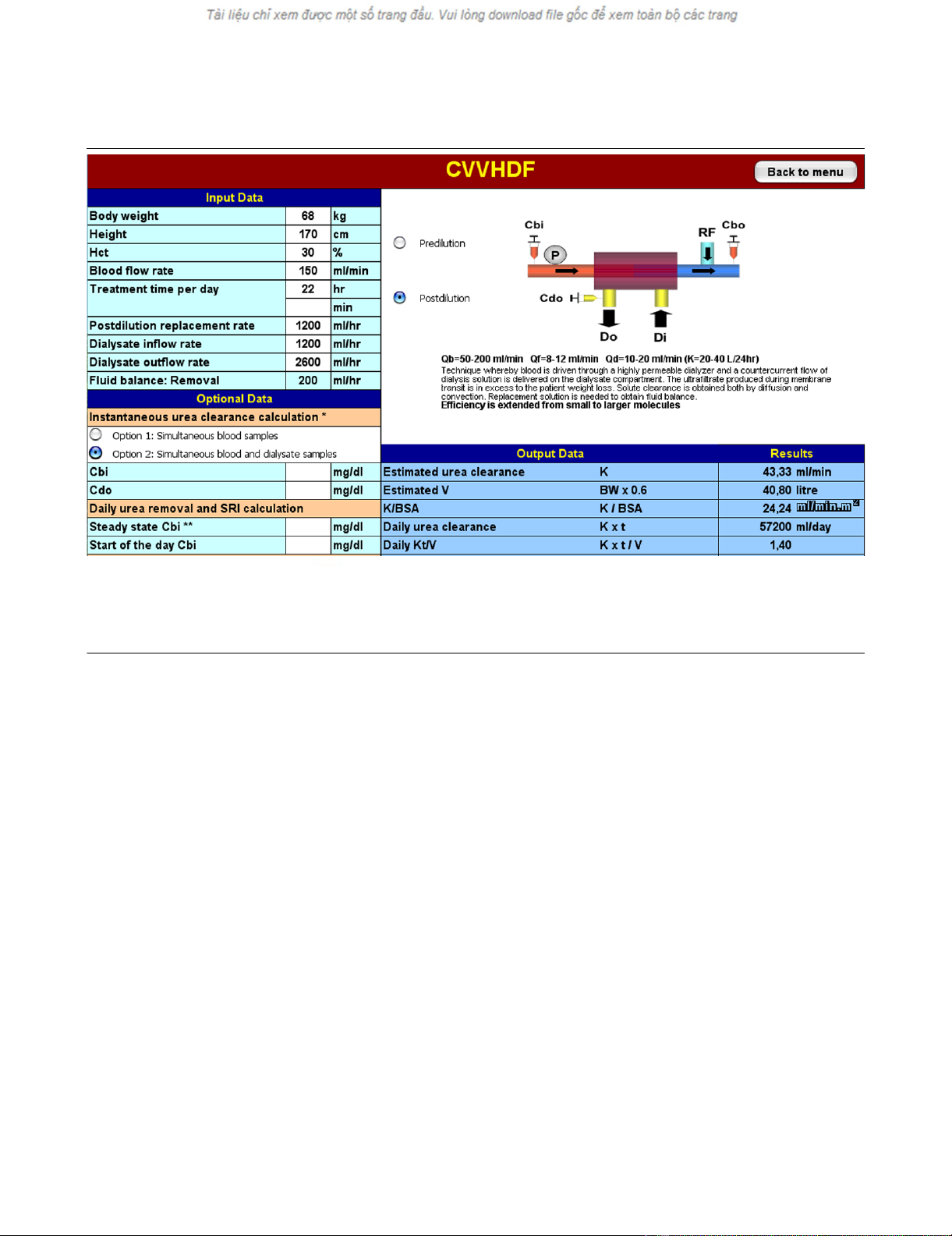 An Adequacy Calculator worksheet: continuous veno-venous hemodiafiltration (CVVHDF) is delivered in a 70 kg patientAn Adequacy Calculator worksheet: continuous veno-venous hemodiafiltration (CVVHDF) is delivered in a 70 kg patient. Post-dilution mode is