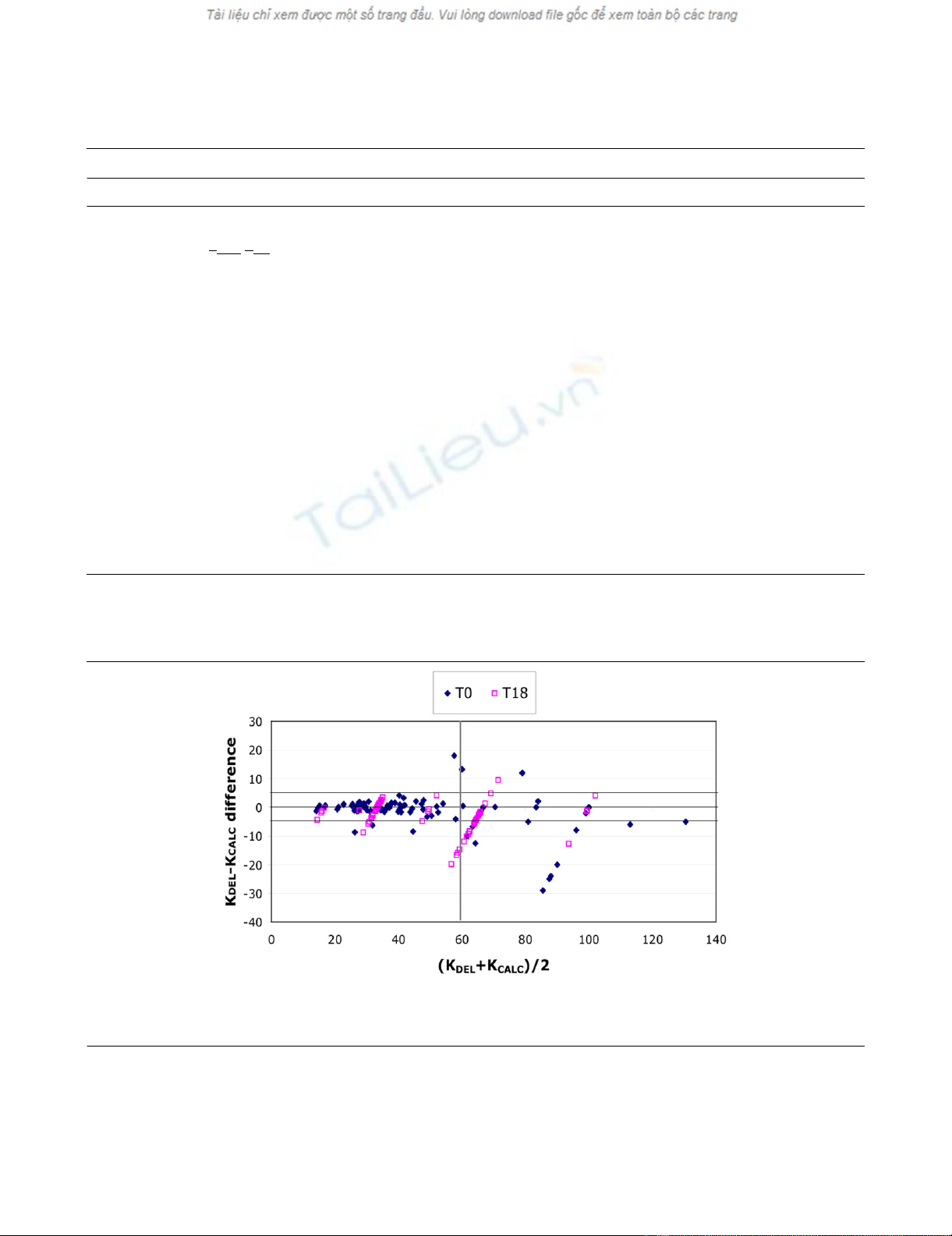 urea clearance obtained by direct measure on prefilter blood and effluent samples (KDEL). It is possible to distinguish the correlations between KCALC