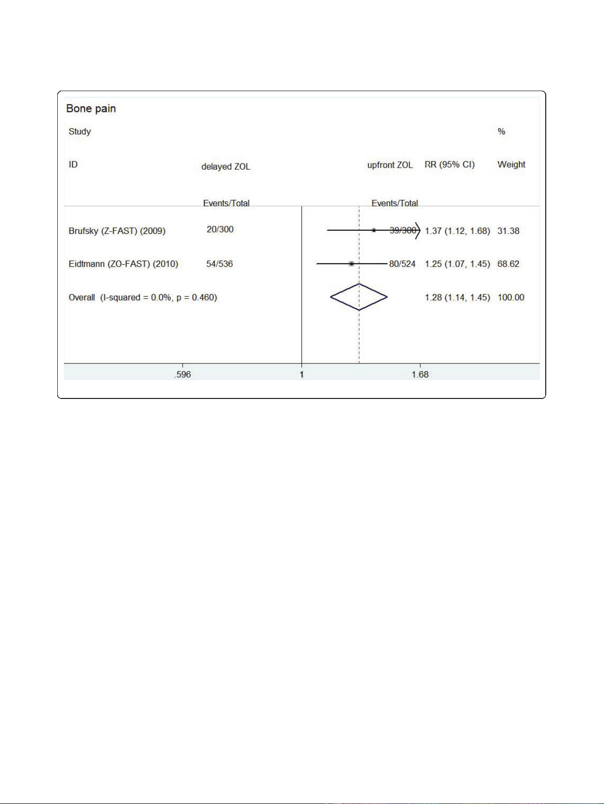 Figure 3 Forest plot for meta-analysis of bone pain of patients treated with upfront zoledronic acid (ZOL) versus delayed ZOL.