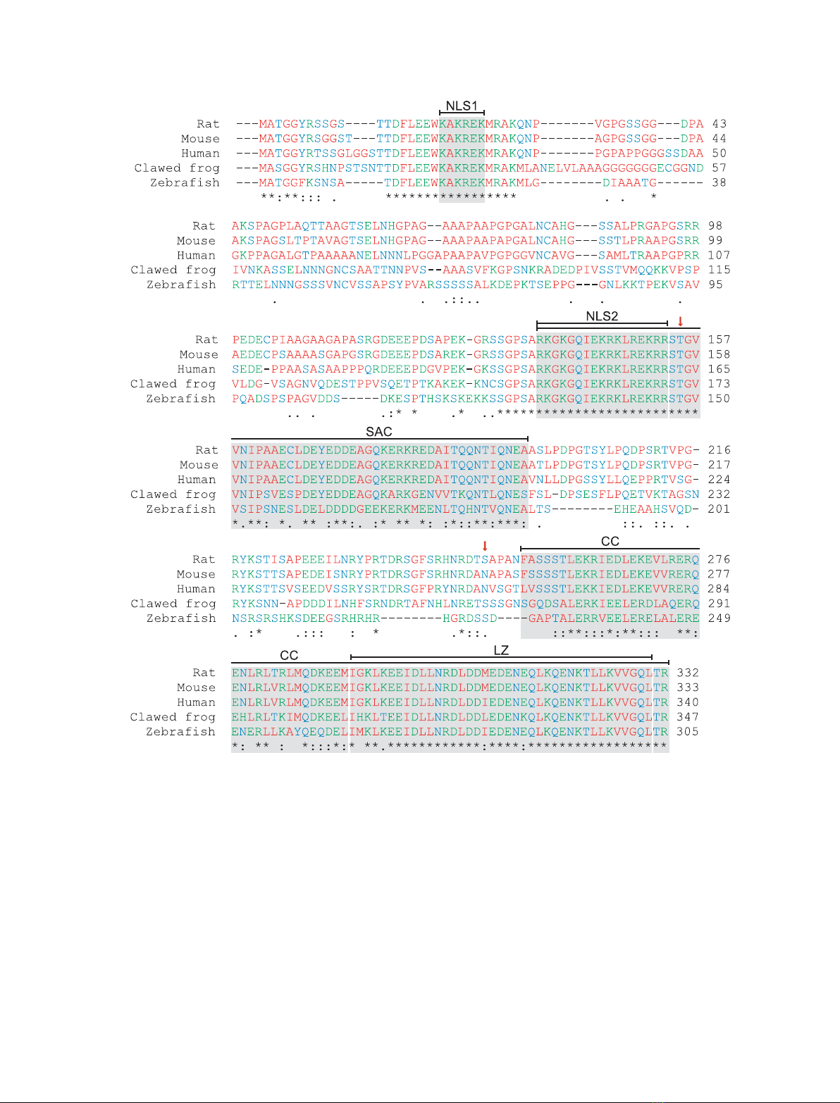 for SAC (137–195), the coiled-coil C-terminal domain (CC, 254-332, coloured red) and the LZ (292–330, shown with hatching). The rrPar-