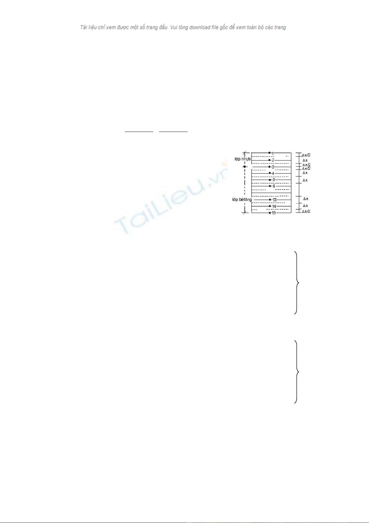 Chia bÒ dµy mÆt cÇu lµm 14 kho¶ng c¸ch ®Òu cã Δx = 0,21m/14 = 0,015 m (h×nh 1). C¸c ®iÓm