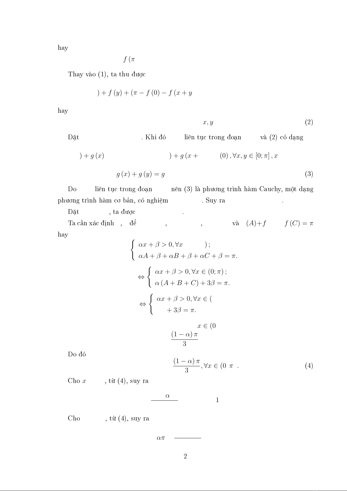 f(x)>0, f (x) + f(y) + f(πxy) = π, x, y (0; π), x +y < π.