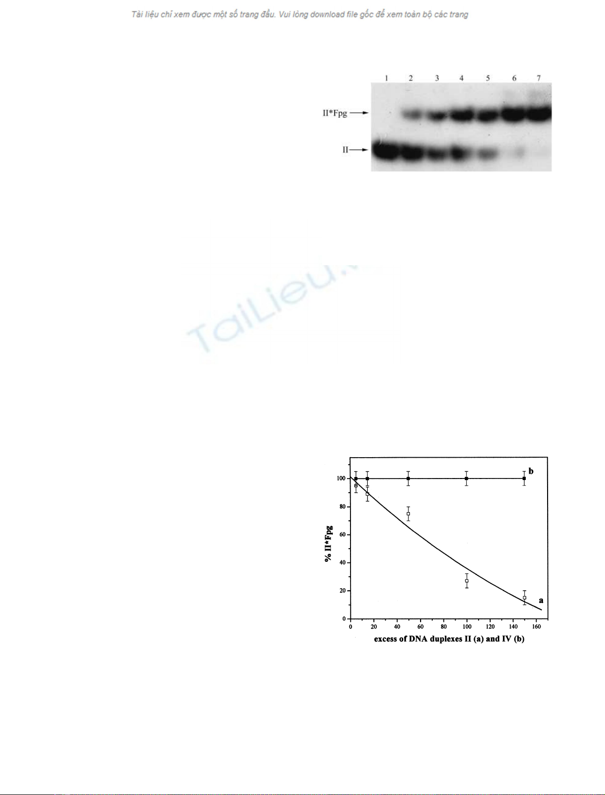 the Fpg protein (lanes 2–7, respectively). The structure of duplex II is