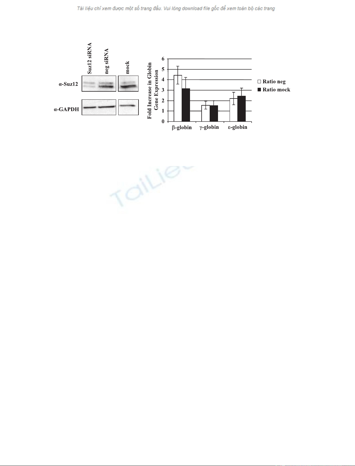 Fig. 4. Suz12 represses b-globin gene expression in K562 cells. K562 cells were nucleofected with Suz12 siRNA, nontargeting siRNA (neg),