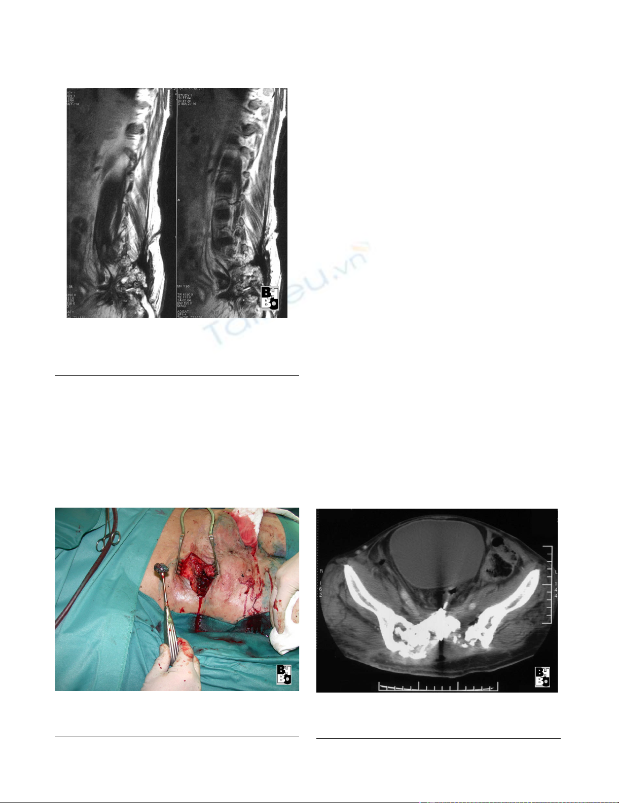 Sagital sections (MRI) of the lumbal and sacral spine showing extended osseous destructions of the sacrumFigure 3