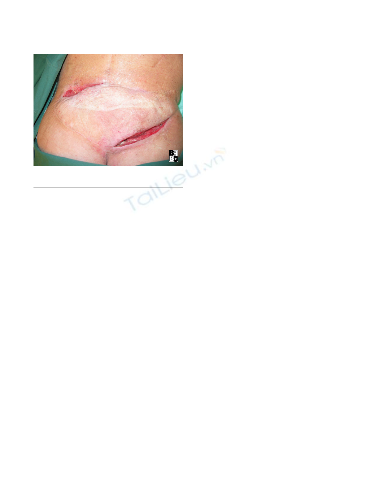 with soft tissue defect of 38 × 26 cm. Following radical