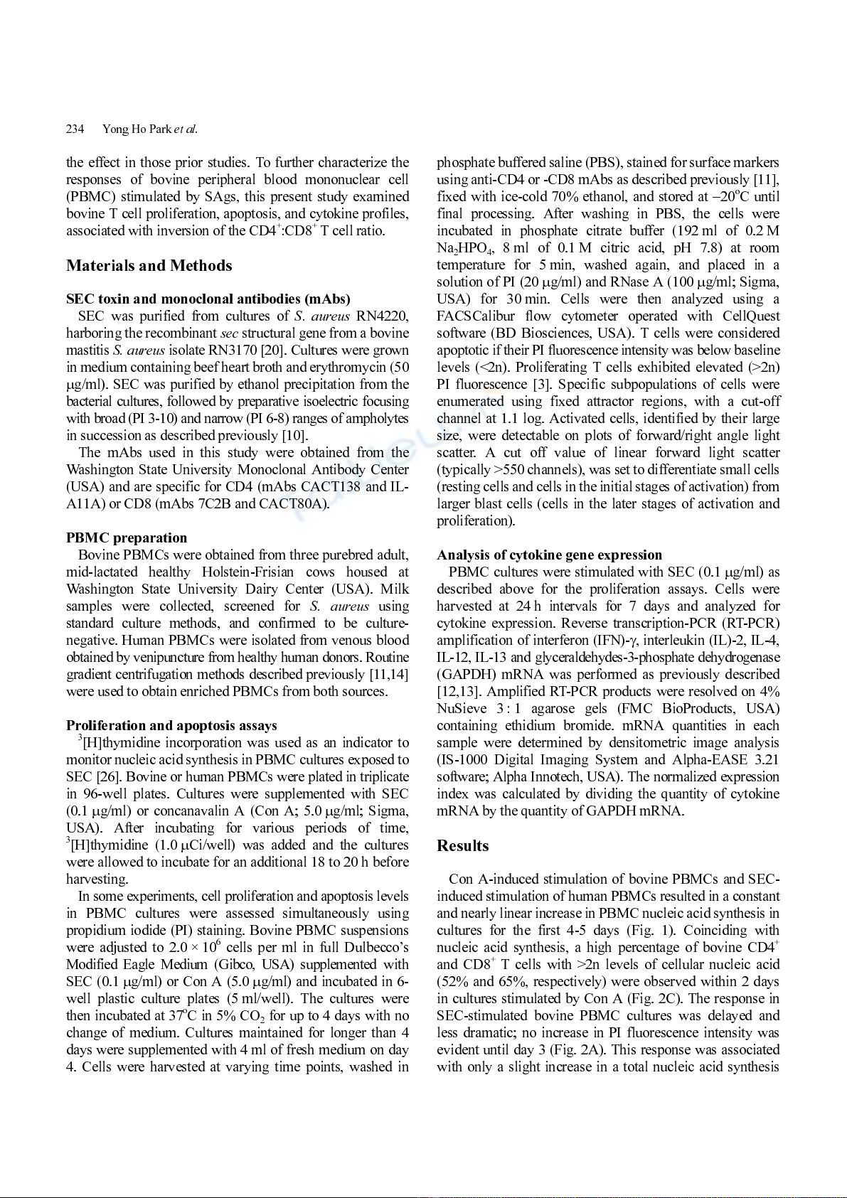 Staphylococcal enteroto xin effects on bovin e T cells 237