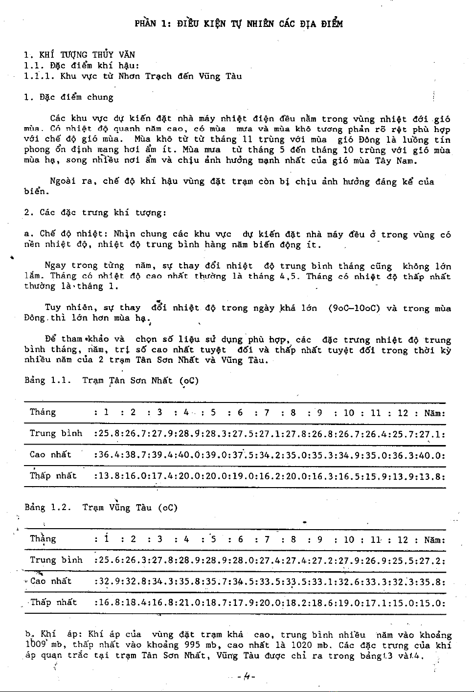 Báo cáo: Luận chứng kinh tế kỹ thuật-Điều kiện tự nhiên các địa điểm