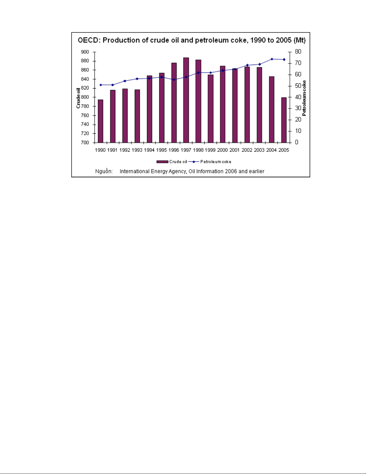 Hình I.2: Sản lượng chế biến dầu thô và sản lượng cốc sản xuất ở OECD