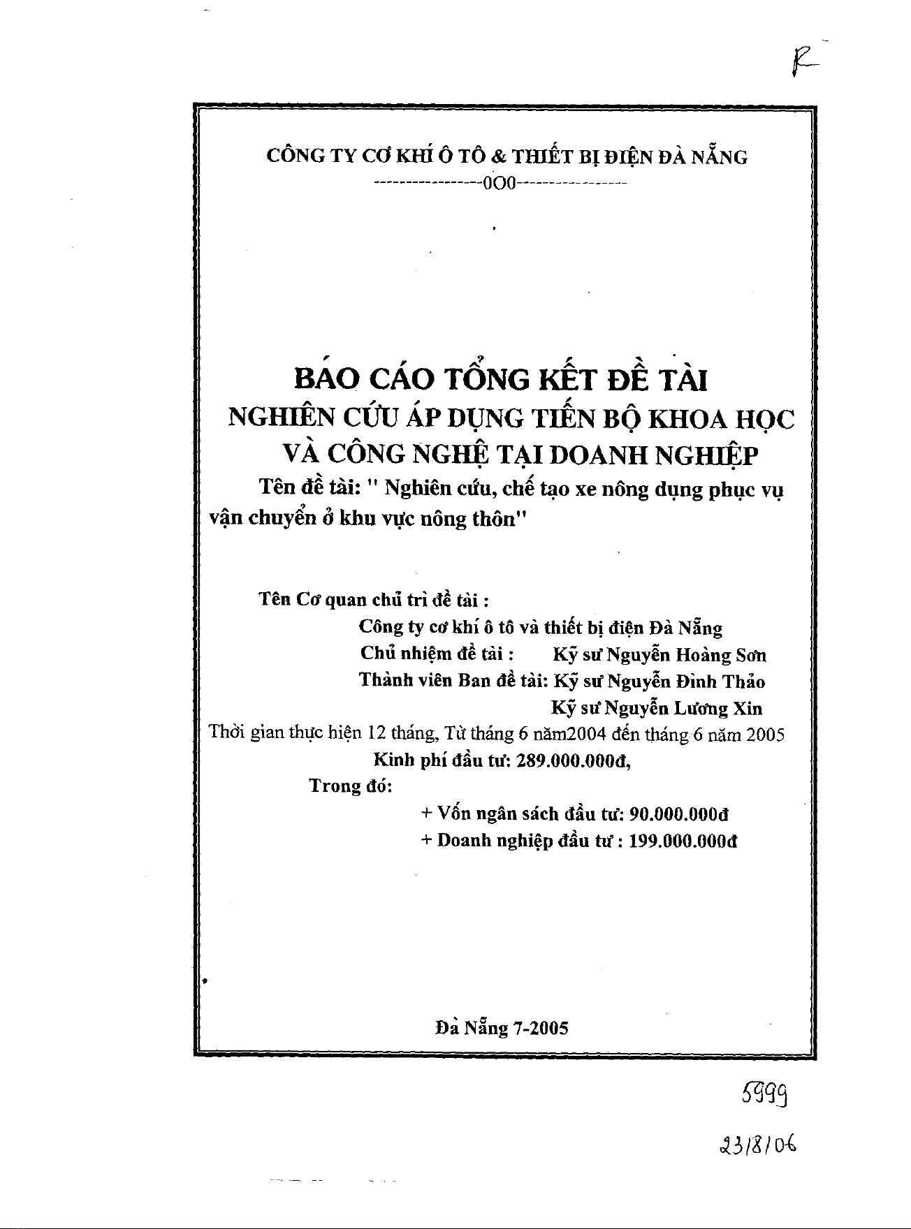 Báo cáo: Nghiên cứu, chế tạo xe nông dụng phục vụ vận chuyển ở khu vực nông thôn