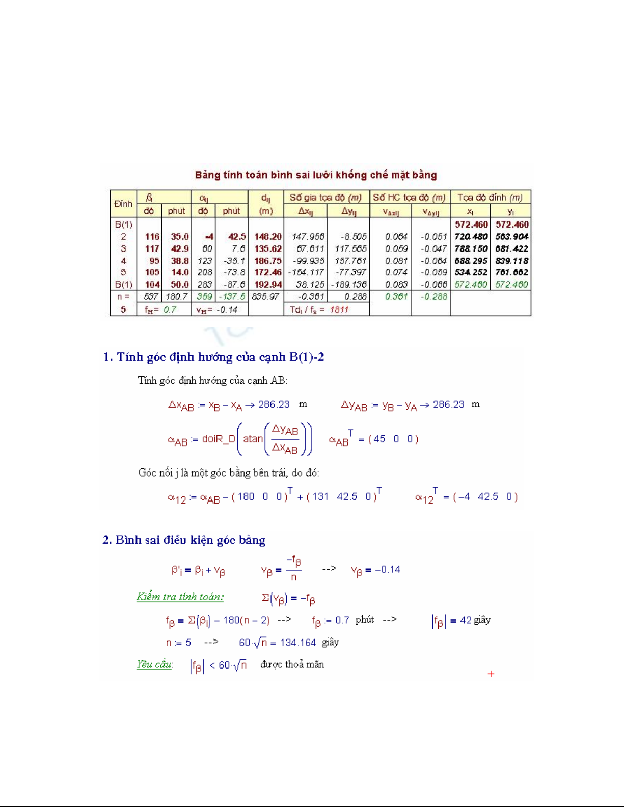 Việc giải và trình bày i toán bình sai lưới khống chế trắc địa thường phức tạp vì yêu cầu làm nhiều