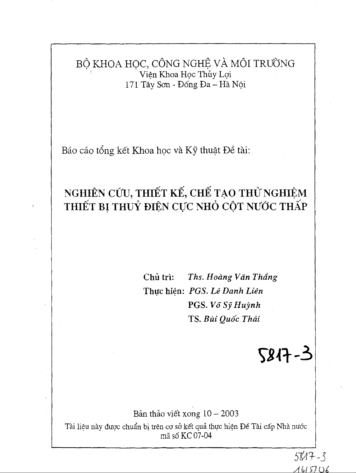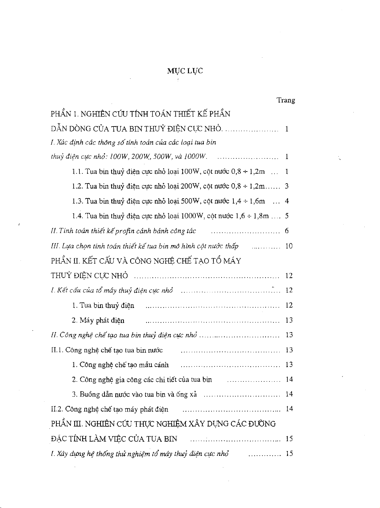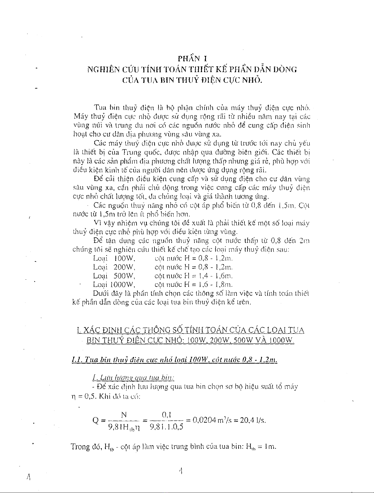 Báo cáo tổng kết khoa học và kỹ thuật đề tài: Nghiên cứu, thiết kế, chế tạo thử nghiệm thiết bị thủy điện cực nhỏ cốt nước thấp