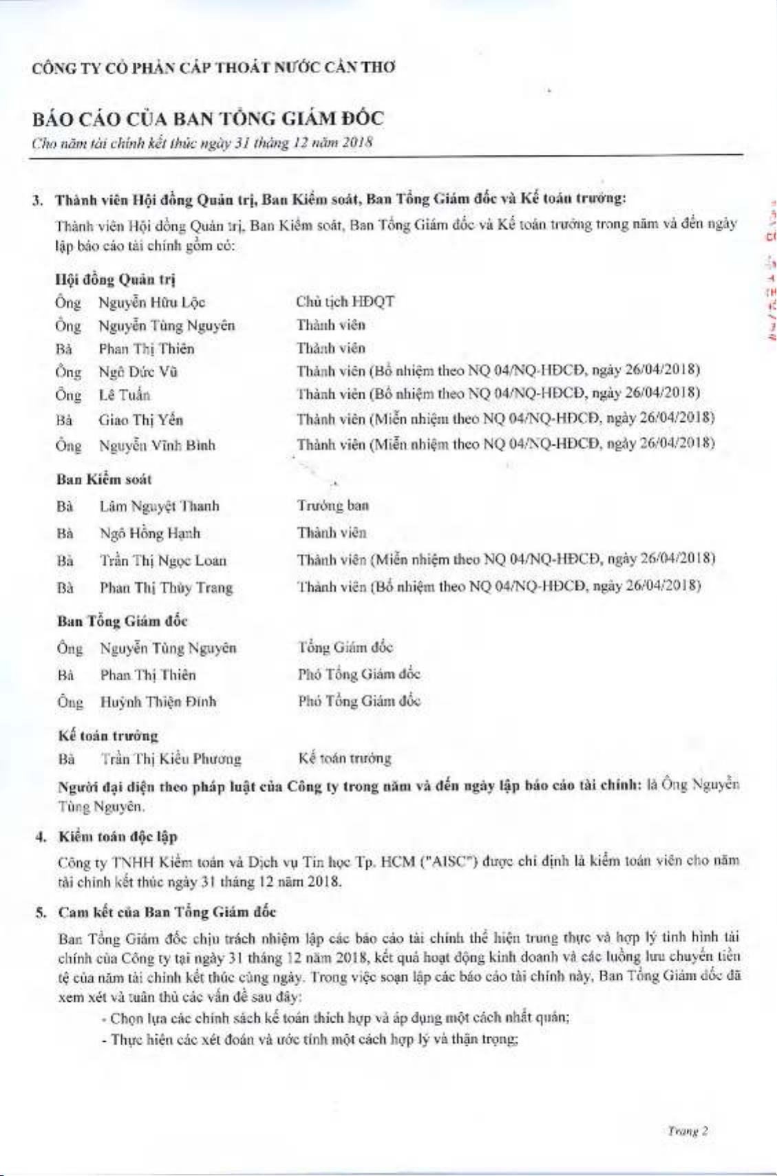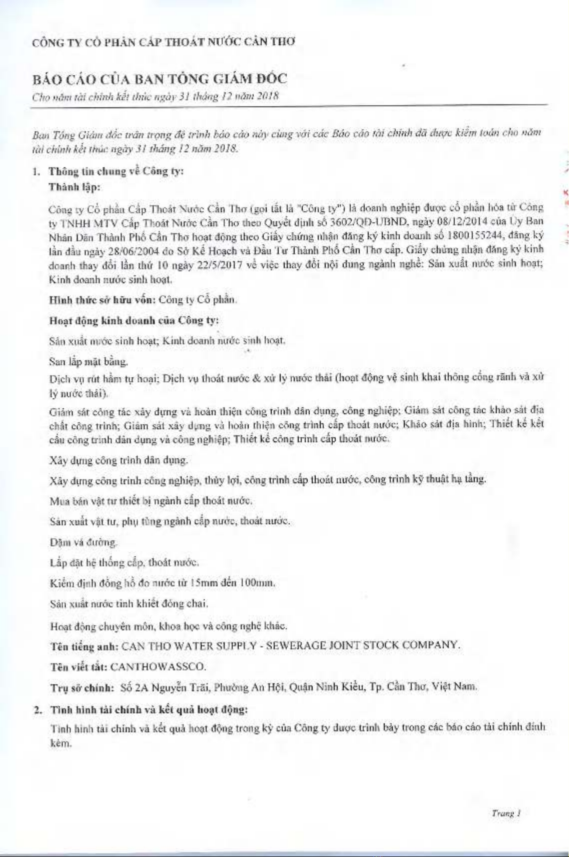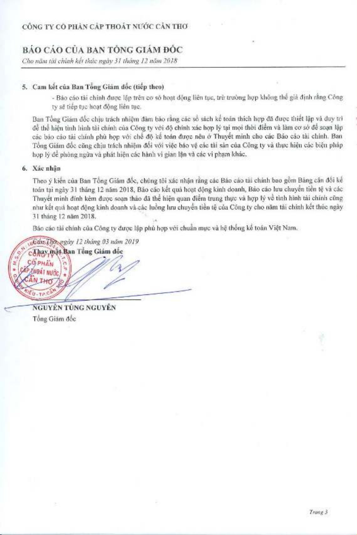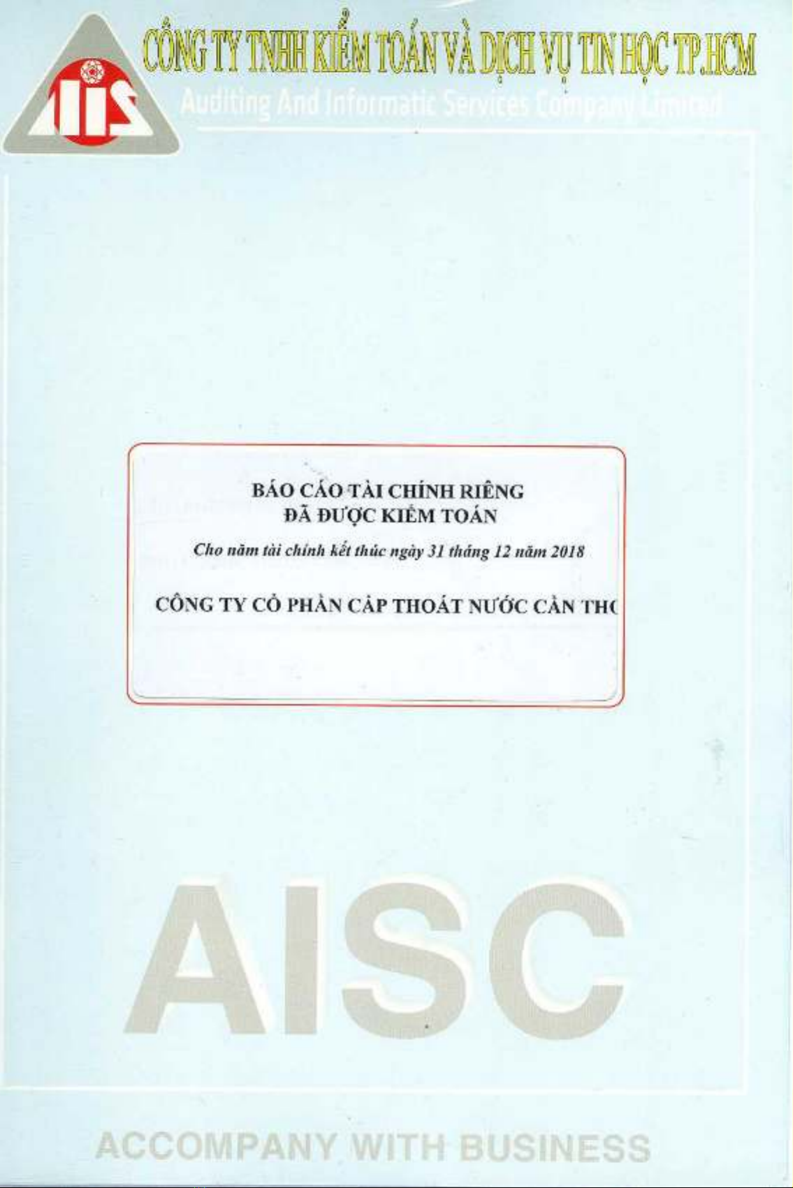 Báo cáo tài chính riêng đã được kiểm toán cho năm tài chính kết thúc ngày 31/12/2018 - Công ty cổ phần Cấp thoát nước Cần Thơ