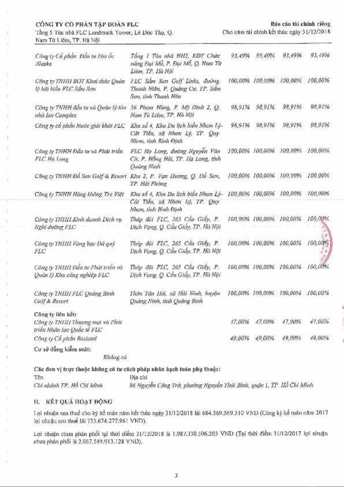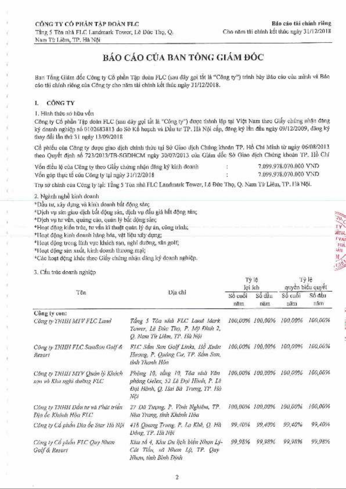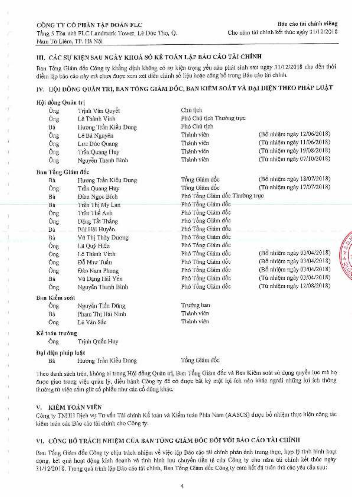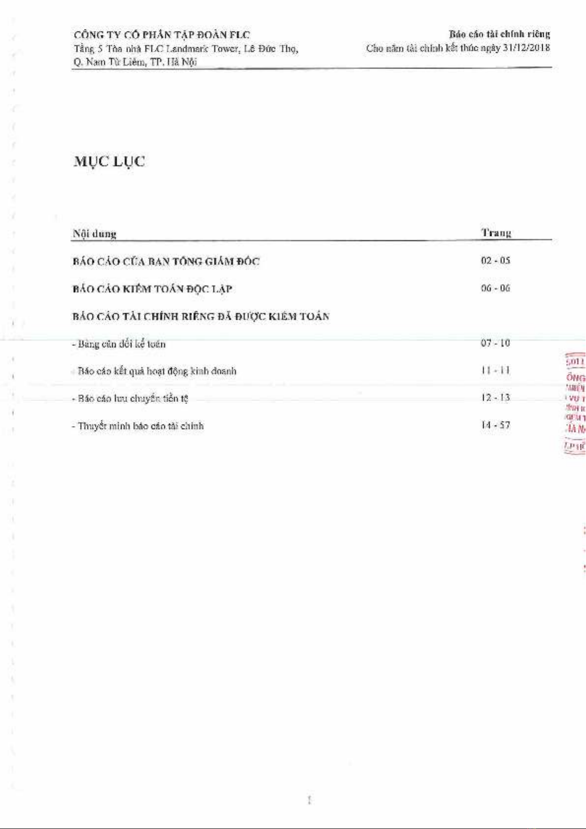 Báo cáo tài chính riêng đã được kiểm toán cho năm tài chính kết thúc ngày 31/12/2018 - Công ty cổ phần tập đoàn FLC