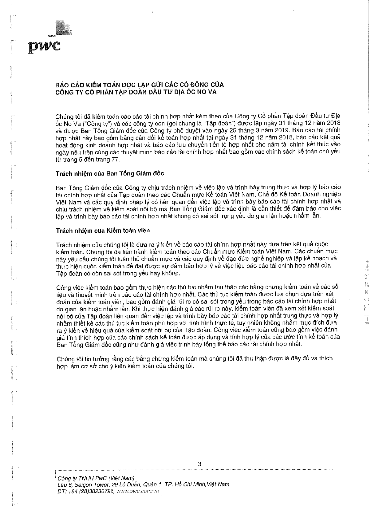 Báo cáo tài chính hợp nhất cho năm tài chính kết thúc ngày 31/12/2018 - Công ty cổ phần tập đoàn đầu tư Địa ốc NoVa