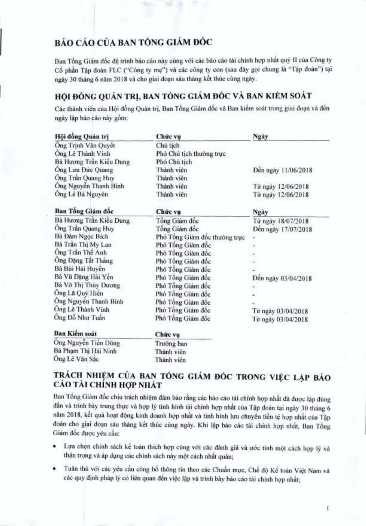 Báo cáo tài chính hợp nhất quý 2 năm 2018 - Công ty cổ phần tập đoàn FLC