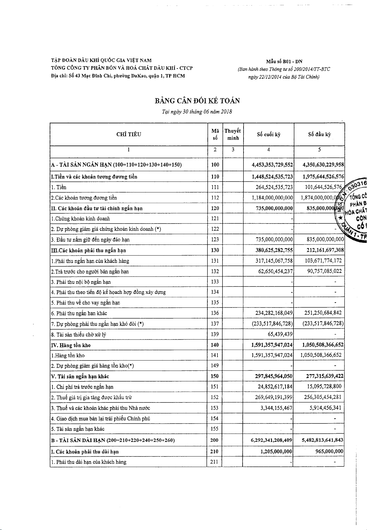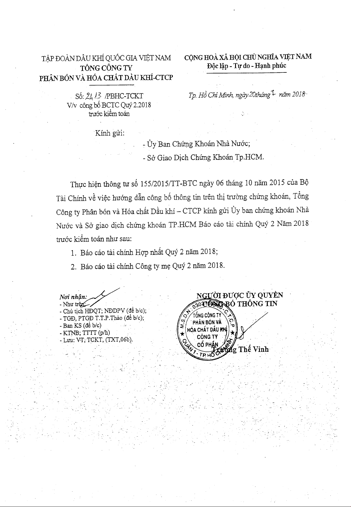Báo cáo tài chính hợp nhất quý 2 năm 2018 - Tổng Công ty Phân bón và Hóa chất Dầu khí - CTCP