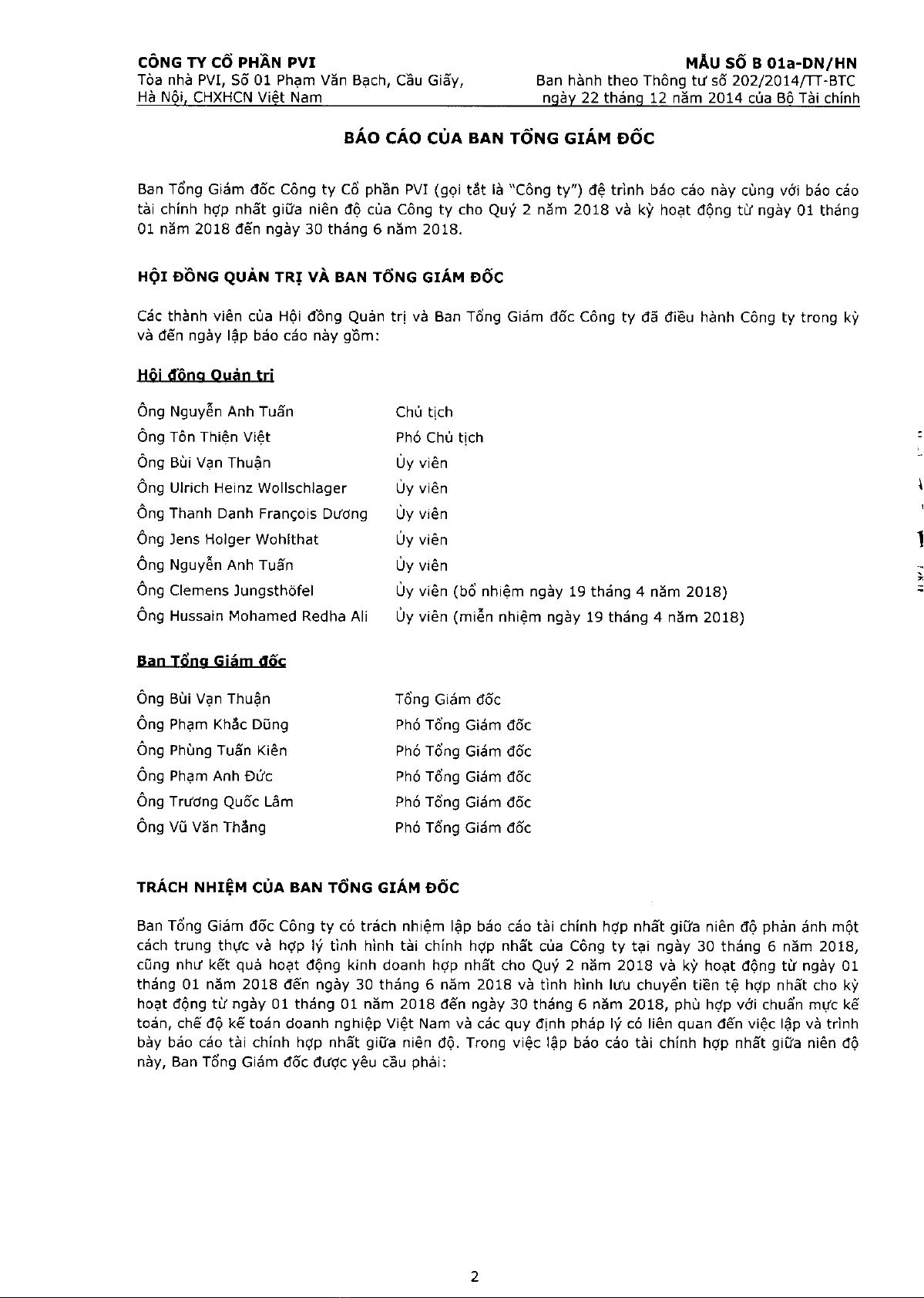 Báo cáo tài chính hợp nhất giữa niên độ quý 2 năm 2018 - Công ty cổ phần PVI