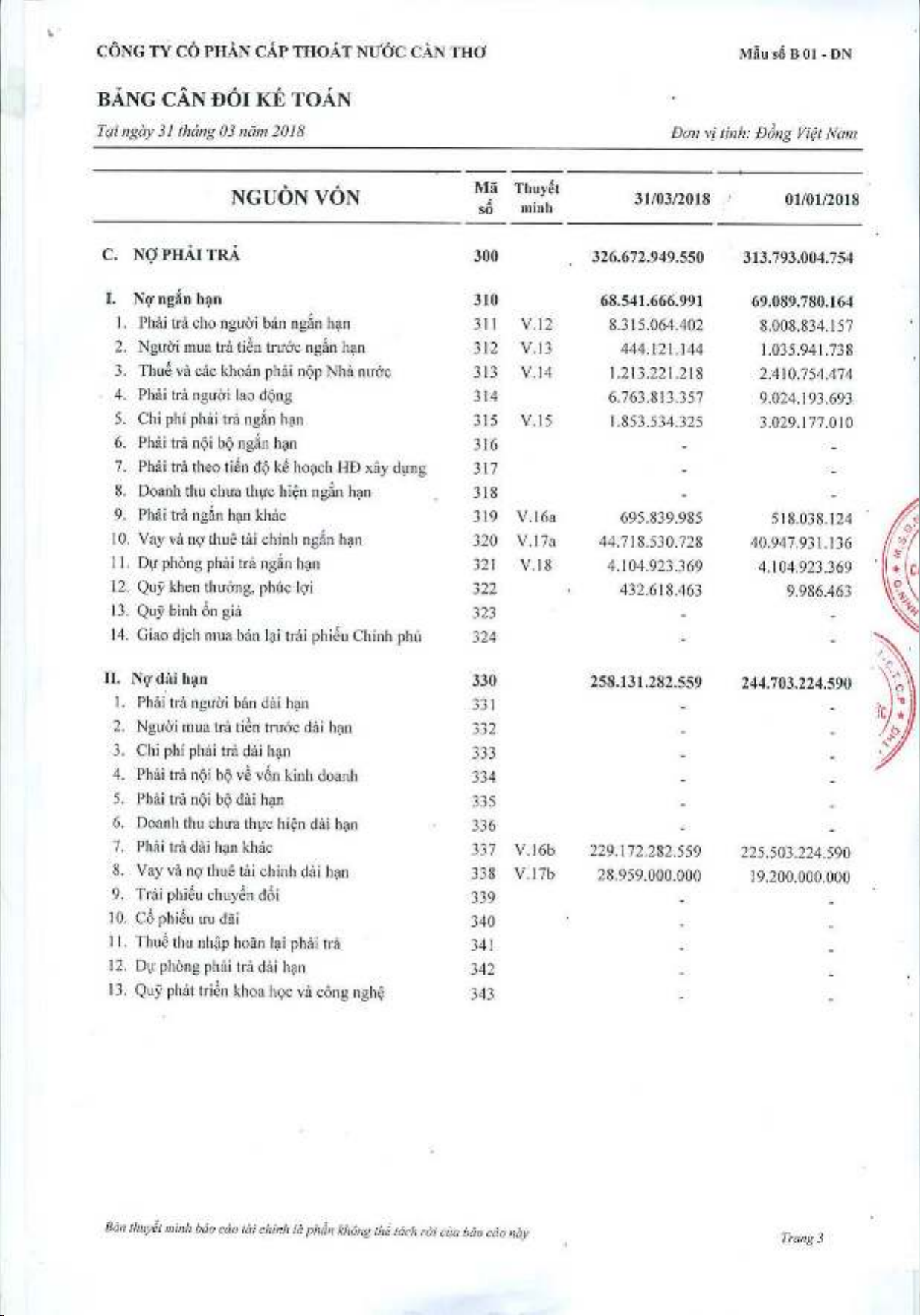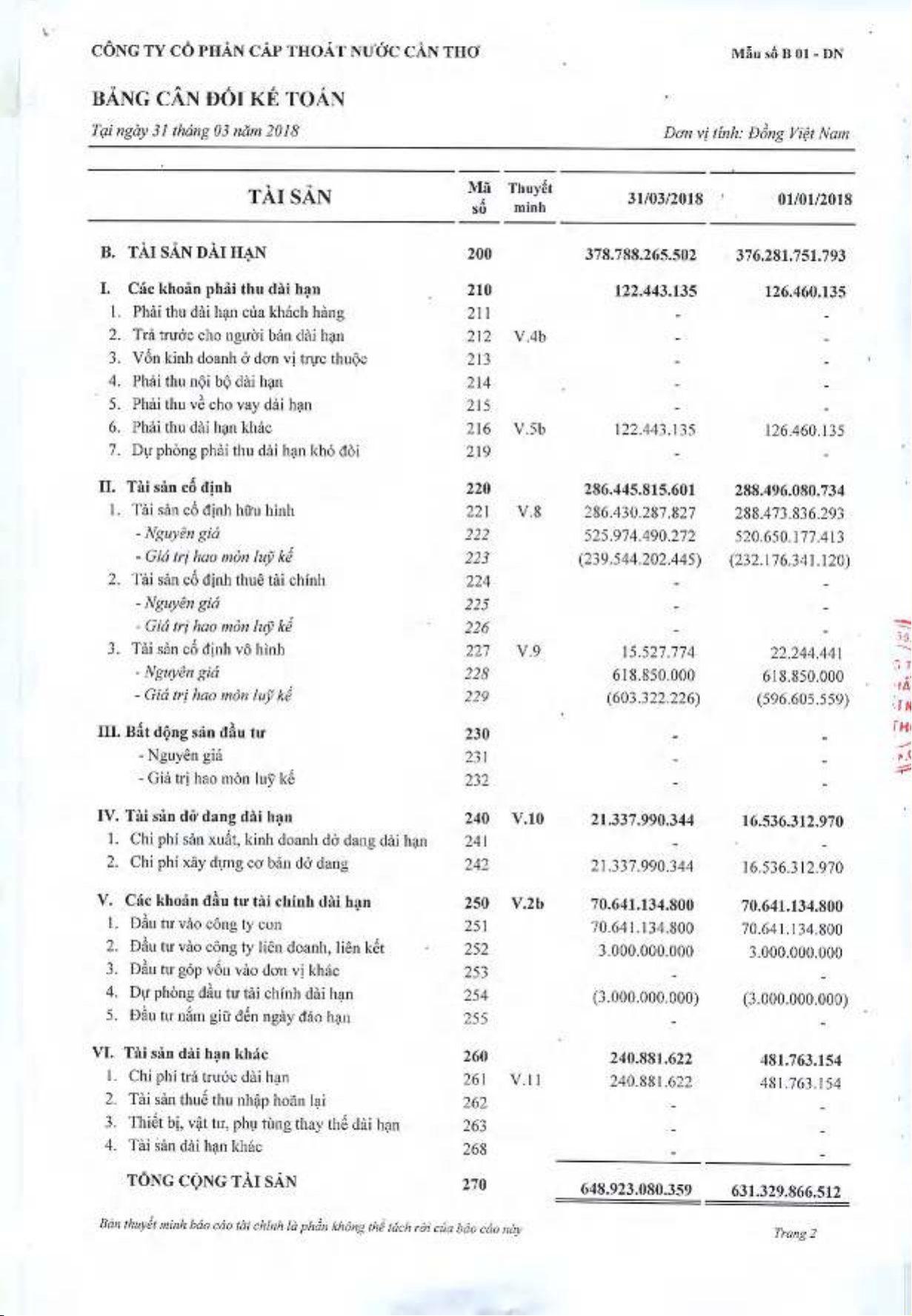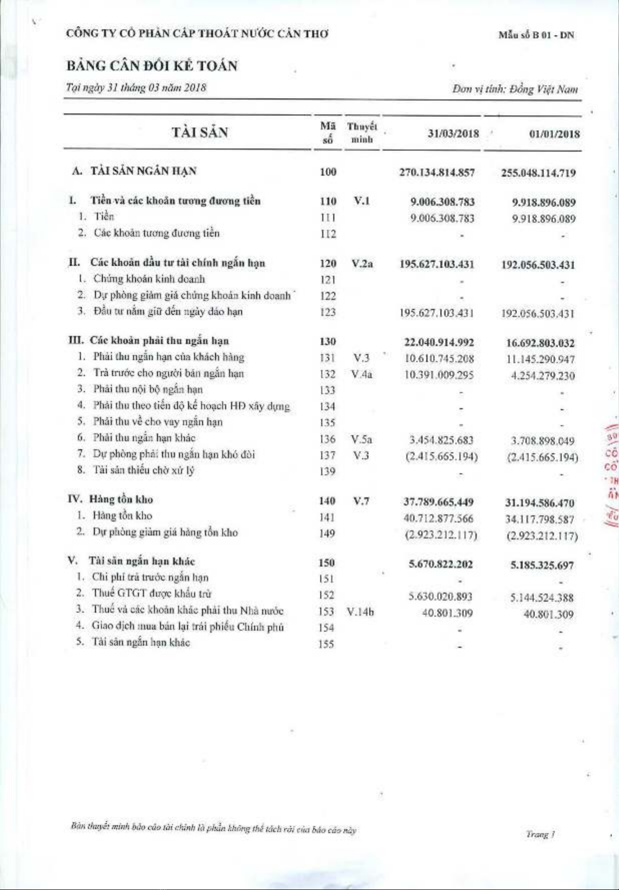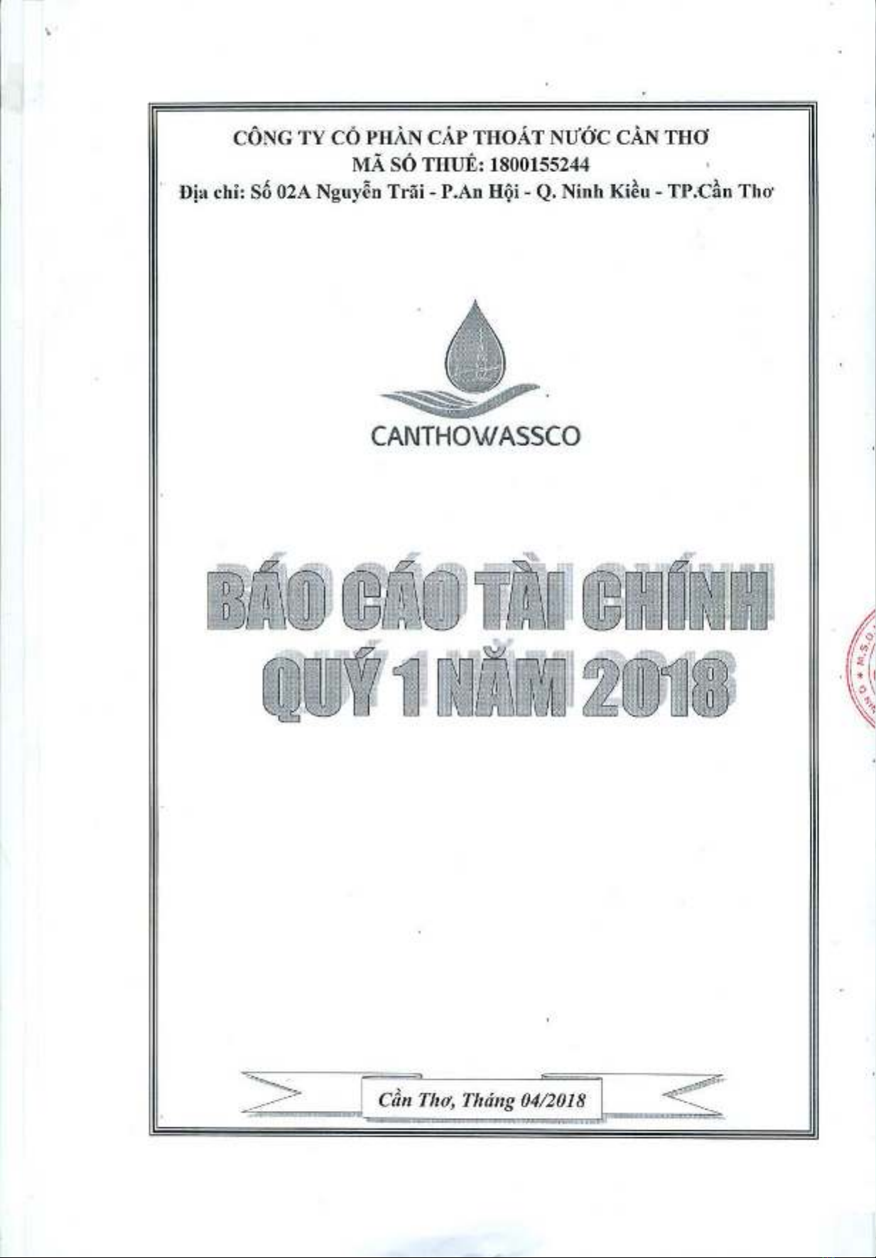 Báo cáo tài chính quý 1 năm 2018 - Công ty cổ phần Cấp thoát nước Cần Thơ